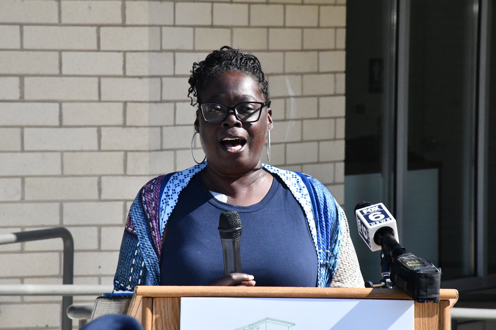 Akuwa Dantzler at LaMarr Franklin Lofts Ribbon Cutting Photo taken Oct. 3, 2025 by Jeramey Jannene. All Rights Reserved.