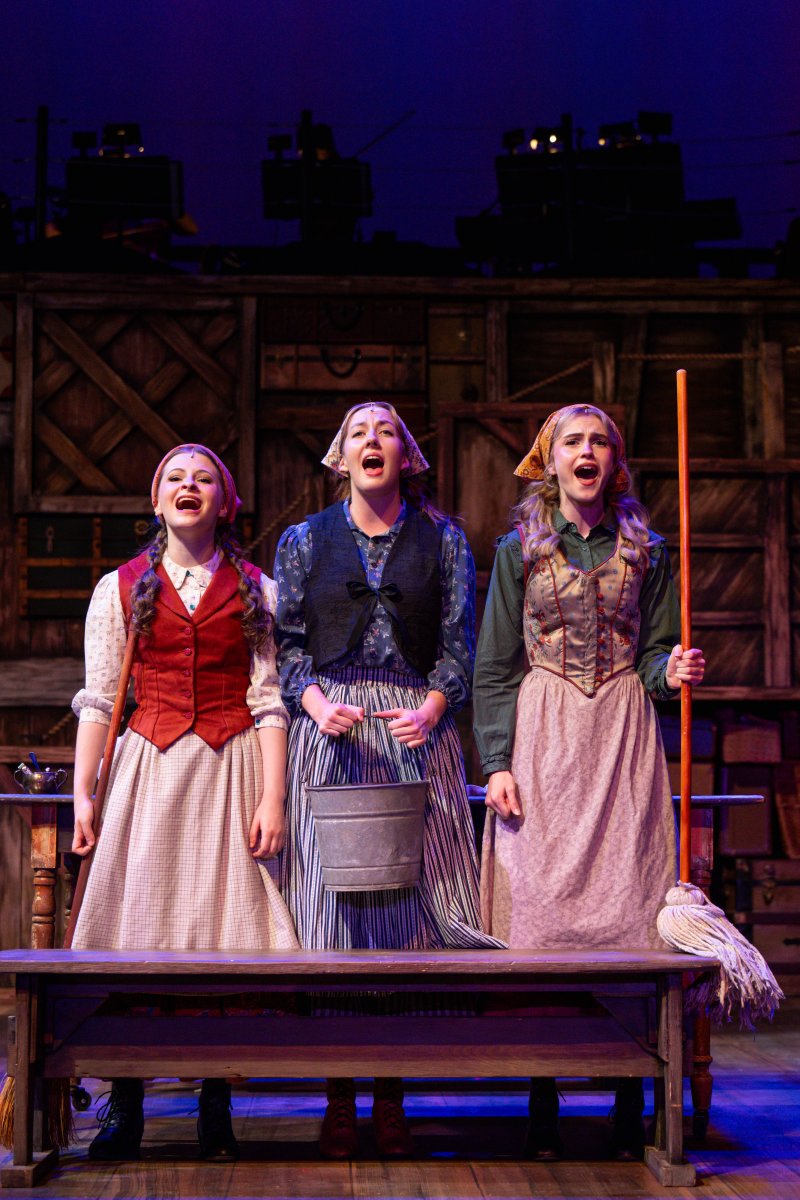 (I. to r.) Naomi Kriege (Chava), Erin Fricker (Tzeitel), and Kynkade McLachlan (Hodel) in Skylight Music Theatre’s production of Fiddler on the Roof running October 3-26, 2025.