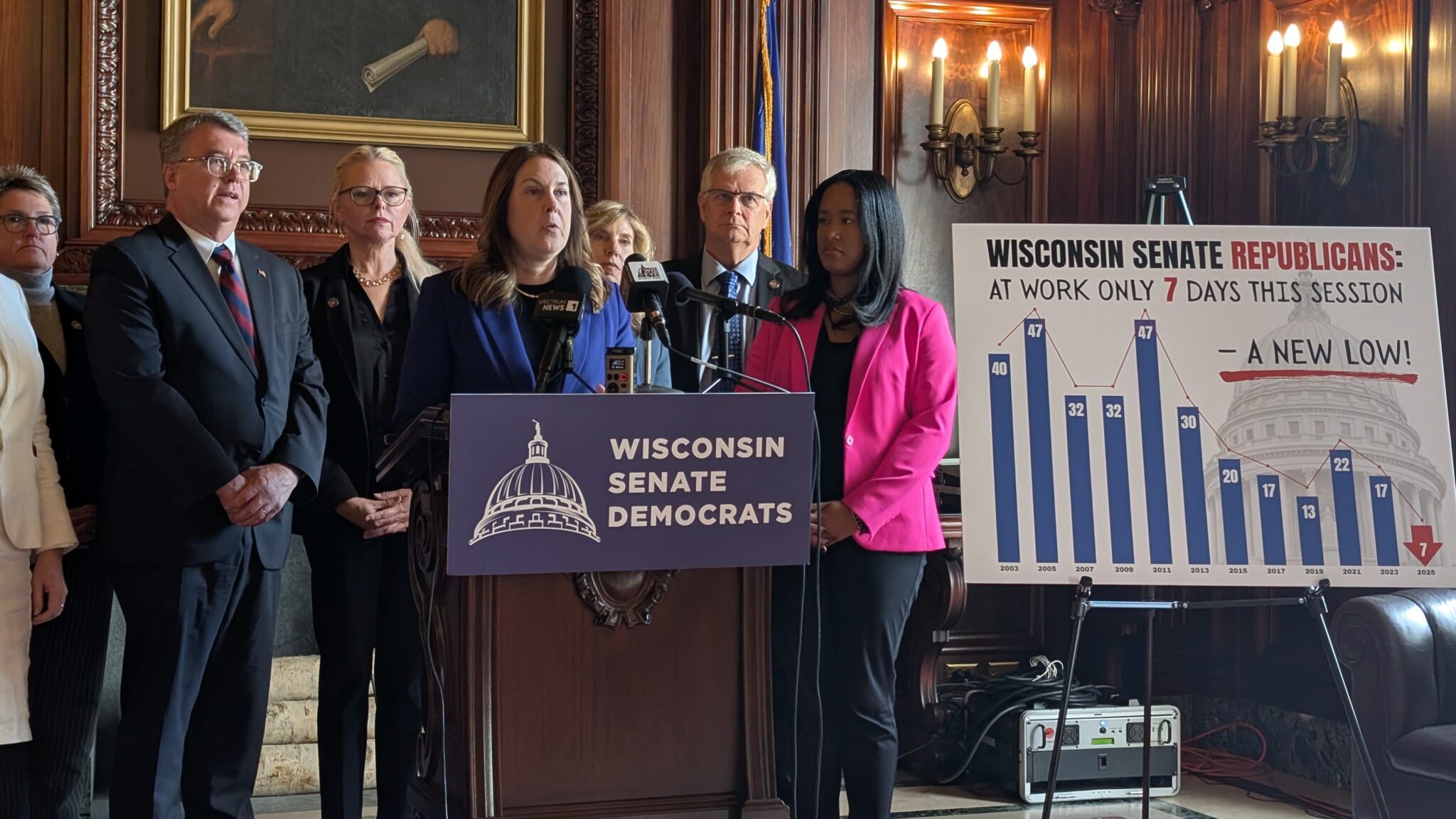 “We are feeling the effects of the big, ugly bill on our families, our farmers and our neighbors who need food assistance or who are covered by Medicaid,” Senate Minority Leader Dianne Hesselbein (D-Middleton) said at a press conference. She was referencing the federal law approved over the summer that made cuts to the SNAP and Medicaid programs to help pay for tax cuts. “So what is the Republican agenda today? Nothing that addresses any of those concerns. The fact that some Republicans are here at all in this building is pretty unusual.”