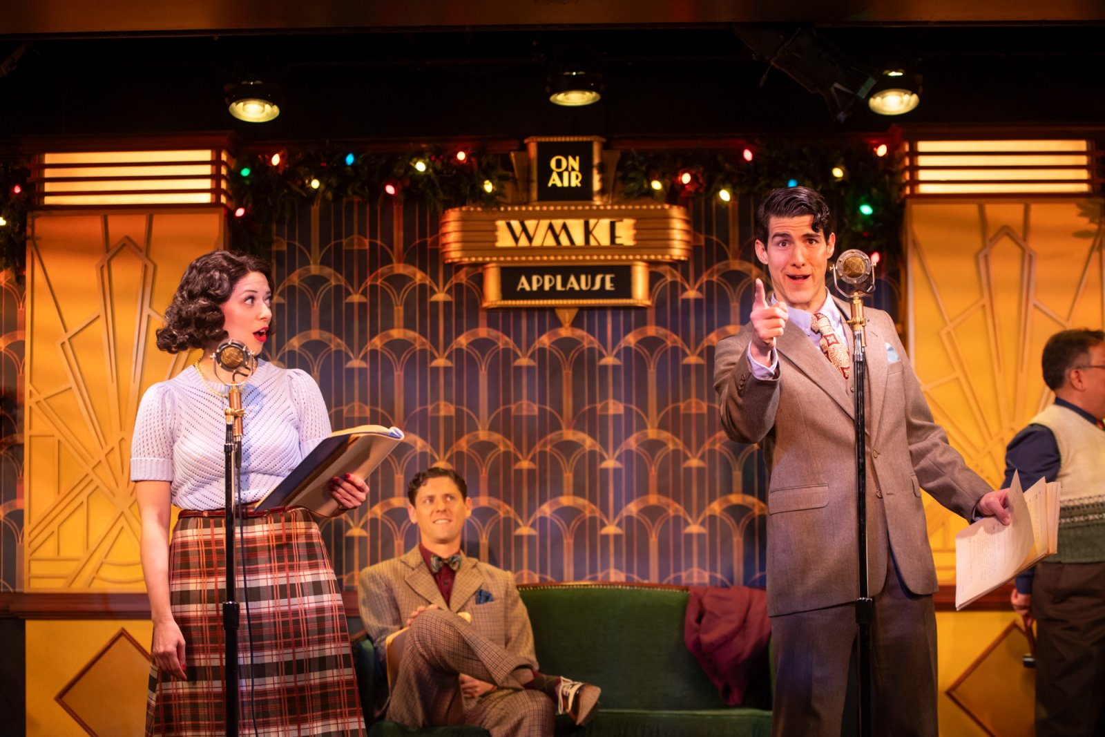 Milwaukee Repertory Theater presents It’s A Wonderful Life: A Live Radio Play in the Stackner Cabaret October 31 – December 21, 2025. Pictured L to R: Eva Nimmer and Daniel Arana. Photo by Mark Frohna.