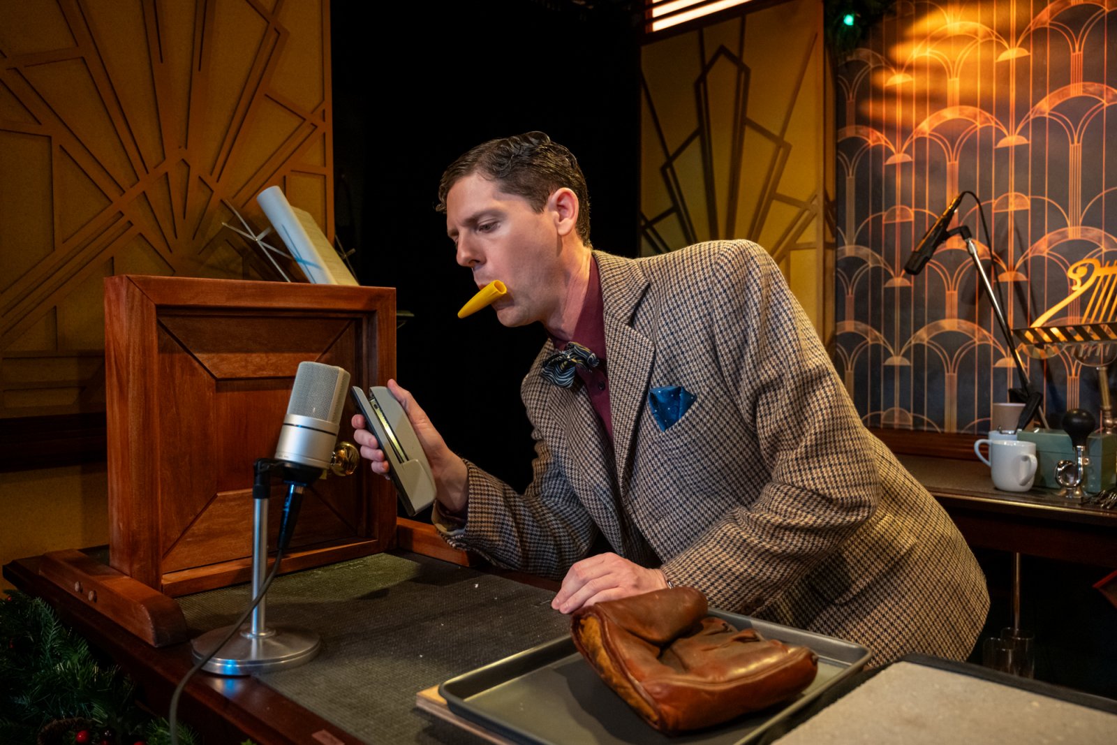 Milwaukee Repertory Theater presents It’s A Wonderful Life: A Live Radio Play in the Stackner Cabaret October 31 – December 21, 2025. Pictured Wade Elkins. Photo by Mark Frohna.