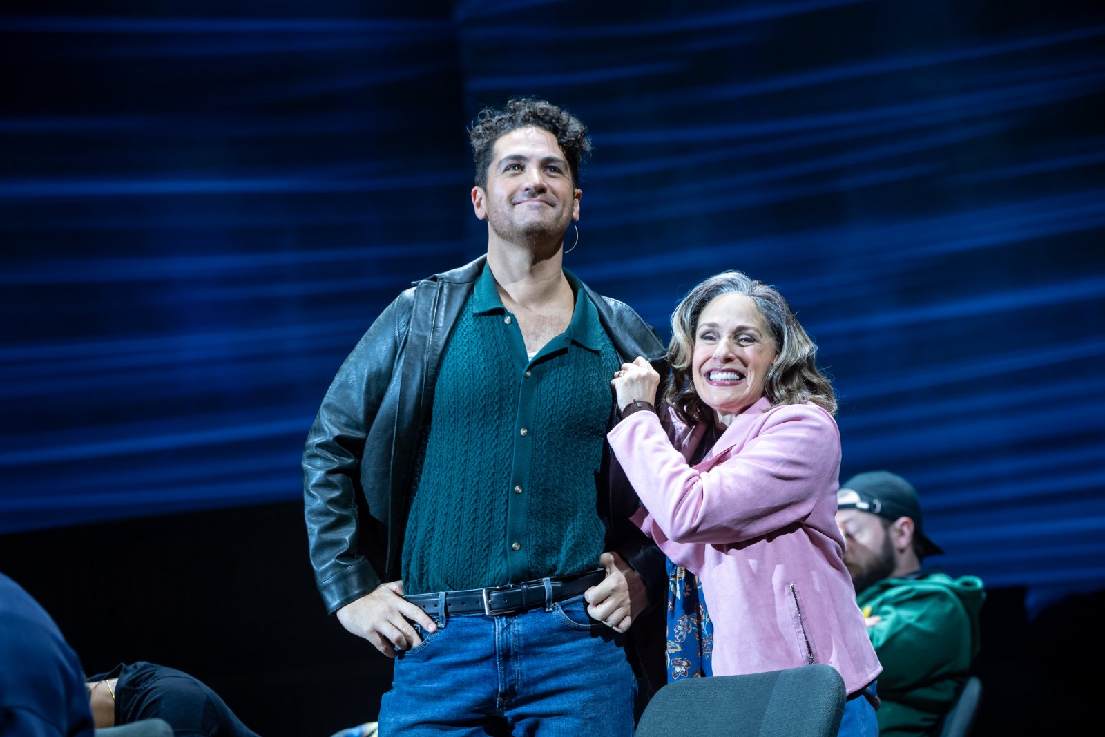 Milwaukee Repertory Theater presents Come From Away in the Ellen & Joe Checota Powerhouse November 4 – December 14, 2025. L to R: Adam Rennie and Joy Hermalyn. Photo by Mark Frohna.