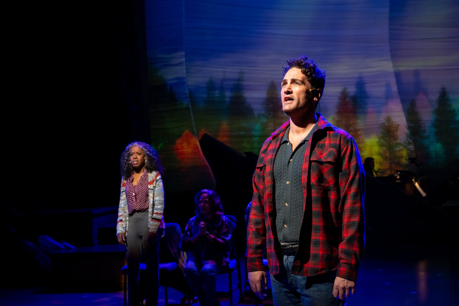 Milwaukee Repertory Theater presents Come From Away in the Ellen & Joe Checota Powerhouse November 4 – December 14, 2025. Pictured L to R: Dayna Jarae Dantzler and Adam Rennie. Photo by Mark Frohna.