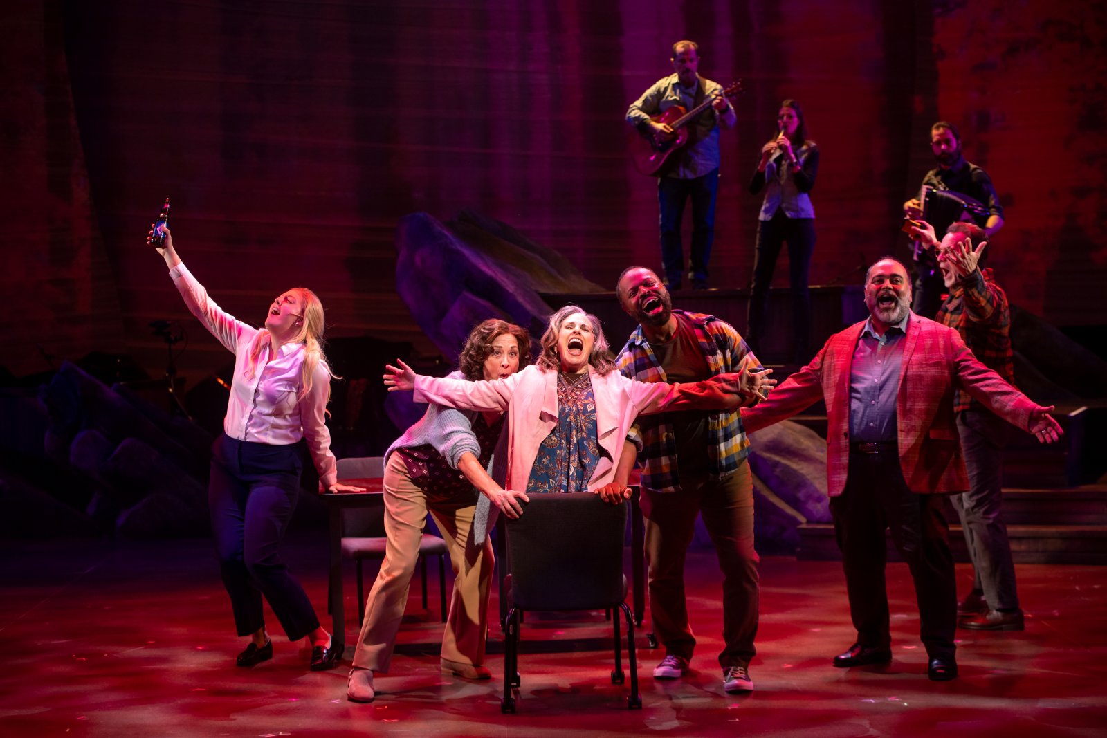 Milwaukee Repertory Theater presents Come From Away in the Ellen & Joe Checota Powerhouse November 4 – December 14, 2025. Pictured L to R Grace Bobber, Karen Ziemba, Joy Hermalyn, Gavin Gregory, Richard Ruiz Henry