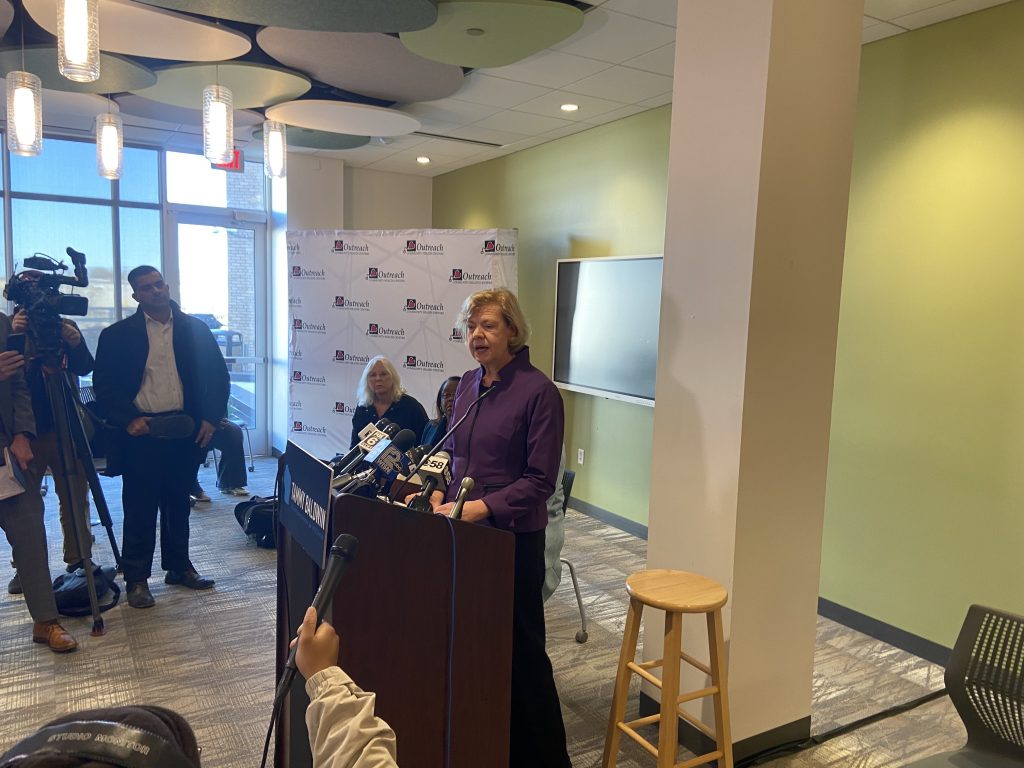 “He used hungry children and hungry families as political pawns,” Baldwin said during a press conference at Outreach Community Health Centers, 220 W. Capitol Drive.