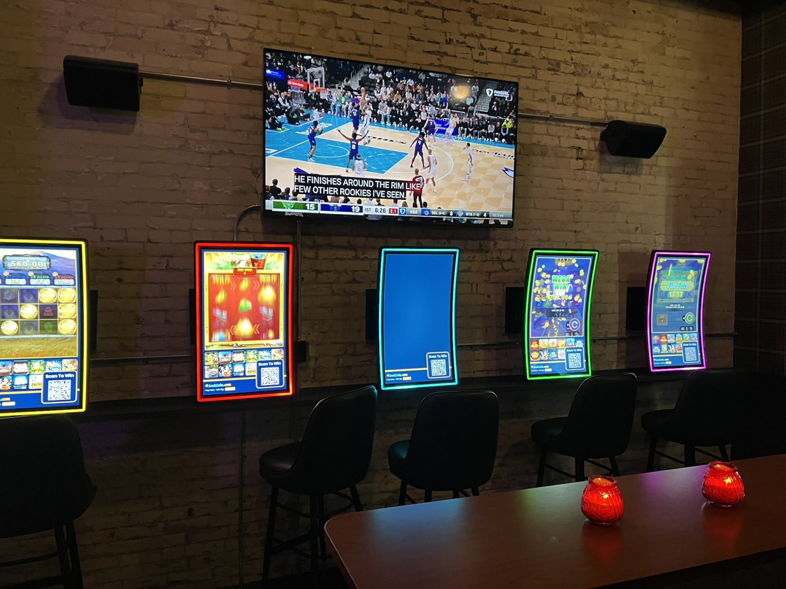 Instead of slots, Your Office has Luck Lake machines, a sweepstakes-style platform that allows players to compete for prizes online. Photo by Jeramey Jannene.