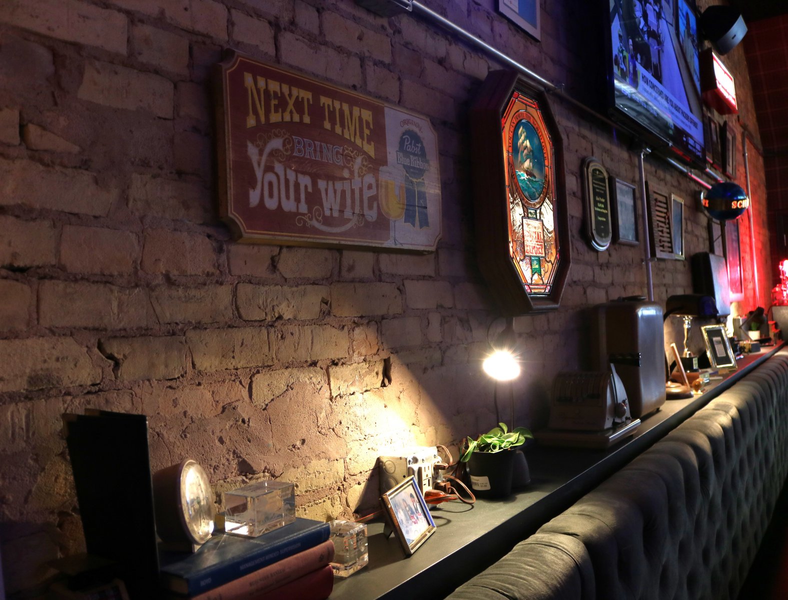 Tons of office memorabilia and jokes, reasonably-priced drinks and food.
