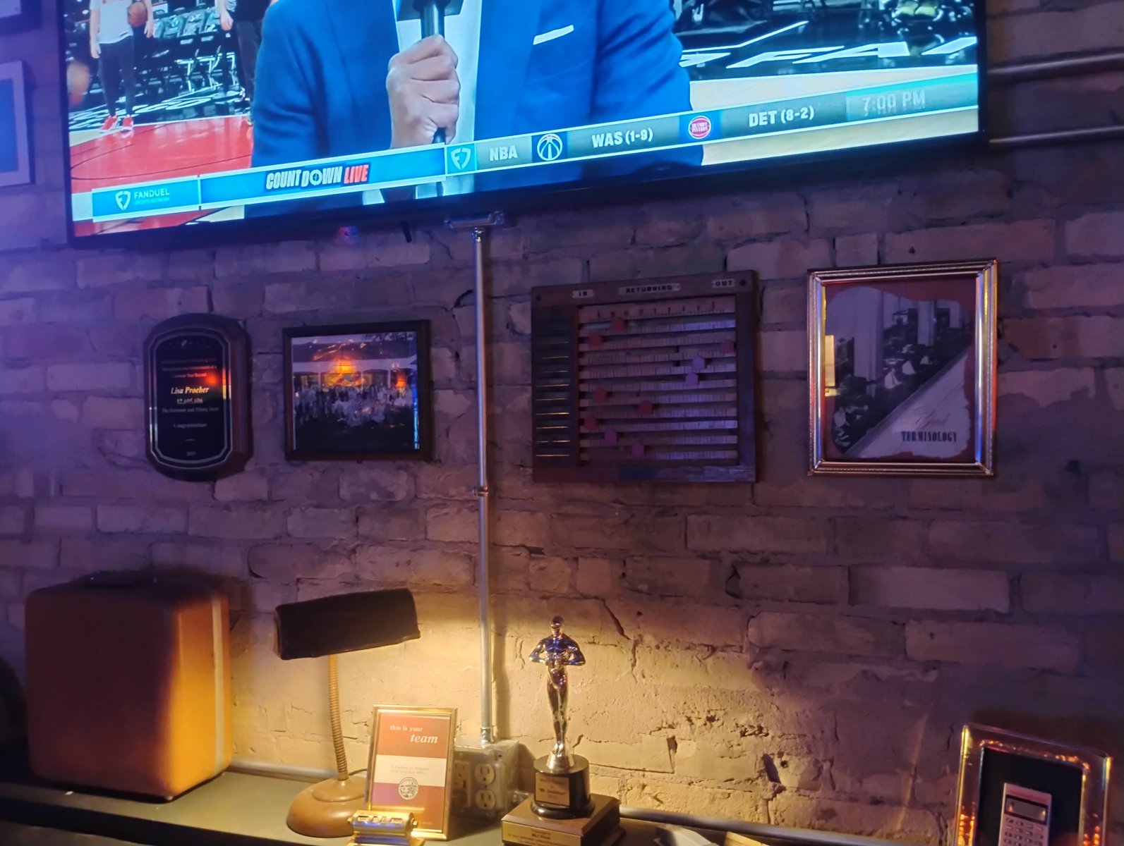 Tons of office memorabilia and jokes, reasonably-priced drinks and food.