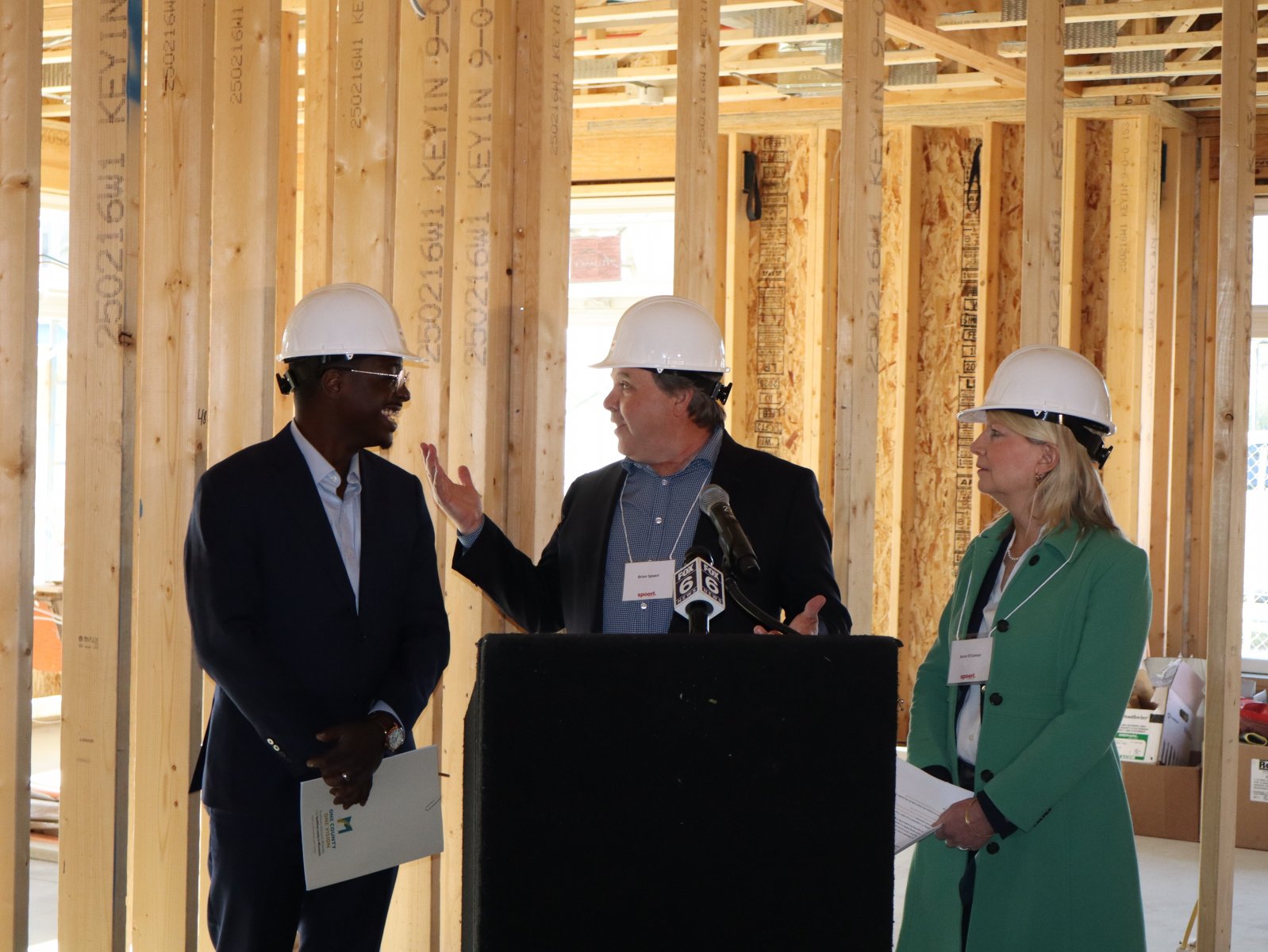 County Executive David Crowley, Brian Spoerl and Anne O'Connor at ceremony for The Hampton, an affordable housing development in Whitefish Bay. Photo taken Nov. 13 by Graham Kilmer.
