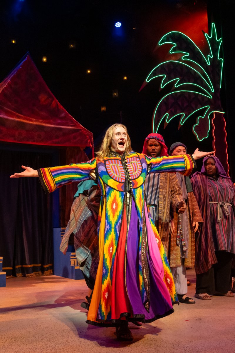 Mason Hanizeski as Joseph, William Toney as Asher, Joshua Thone as Gad, and Ciara Hart as Zebulon in Skylight Music Theatre’s production of Joseph and the Amazing Technicolor® Dreamcoat, running November 14 through December 28, 2025.