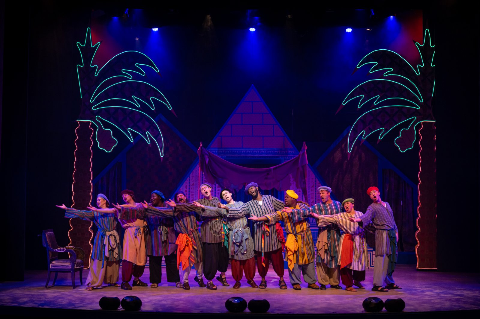 Samantha Sostarich as Dan, Matthew Torkilsen as Benjamin, Ciara Hart as Zebulon, Jesse Weinberg as Reuben, Matt Zeman as Naphtali, Jake Horstmeier as Simeon, William Toney as Asher, Shawn Holmes as Judah, Josh Pope as Levi, Rachel Bednarowski as Issachar, and Joshua Thone as Gad in Skylight Music Theatre’s production of Joseph and the Amazing Technicolor® Dreamcoat, running November 14 through December 28, 2025