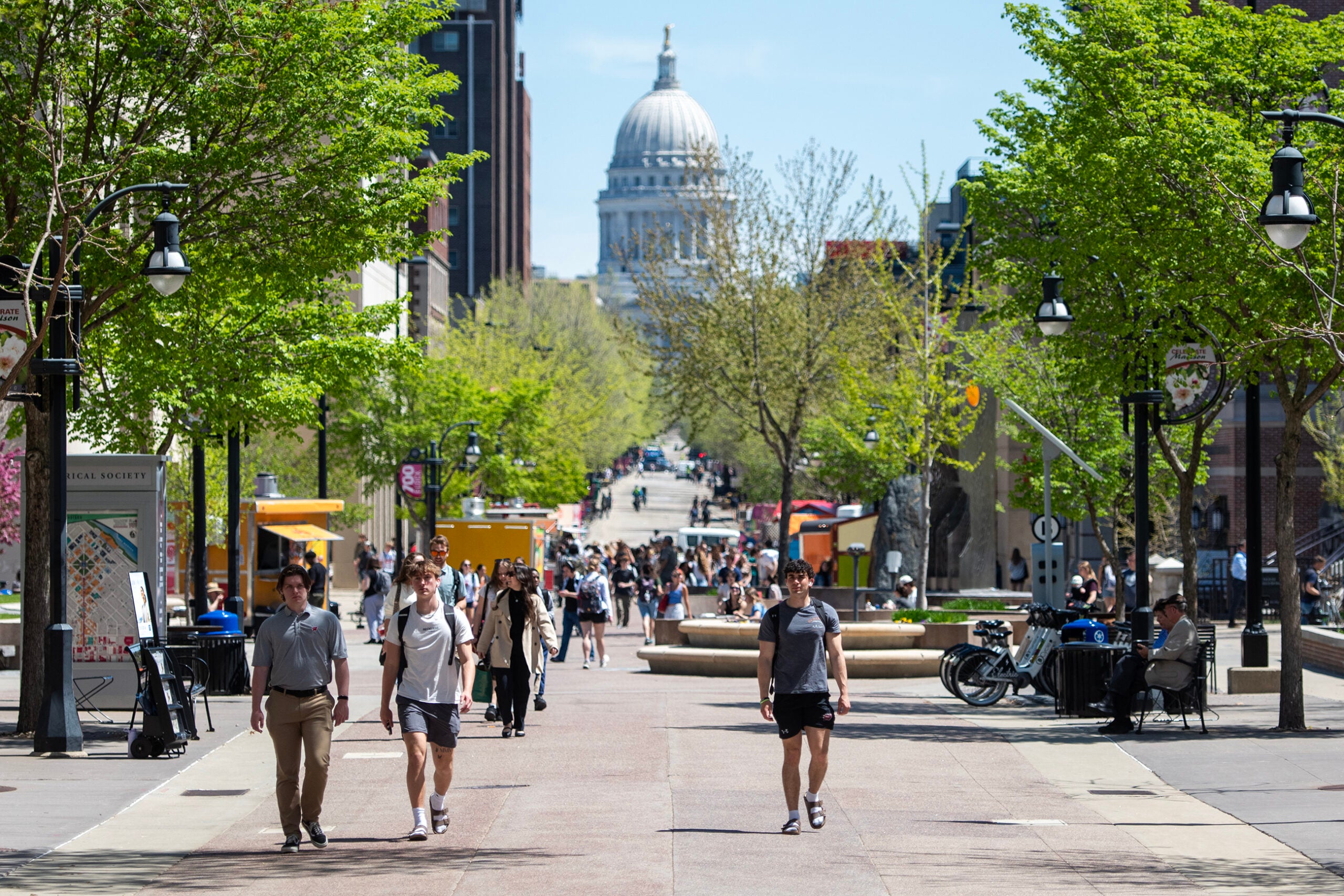 UW-Madison students walk on campus Tuesday, May 6, 2025, in Madison, Wis. Angela Major/WPR