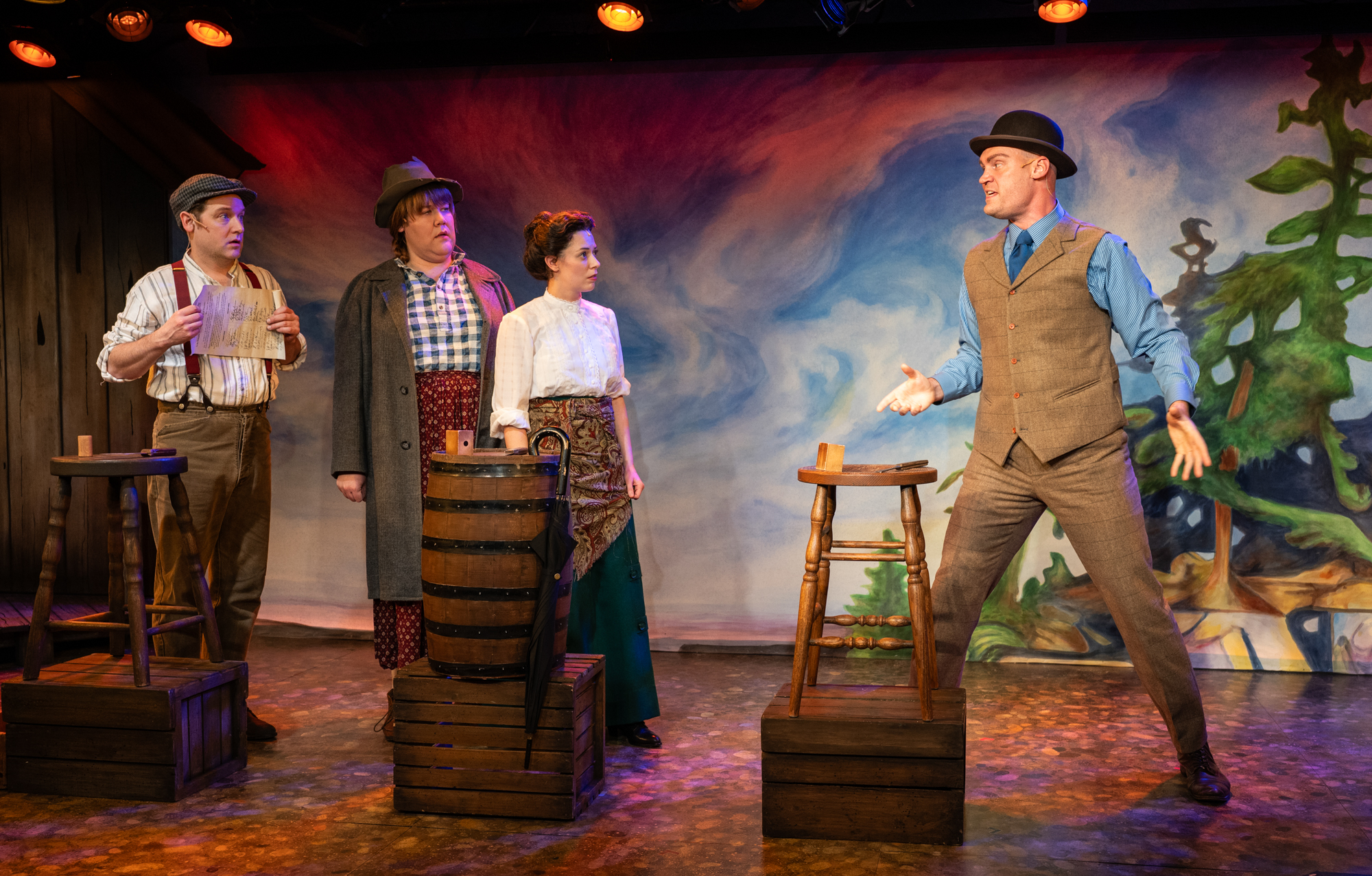 Milwaukee Repertory Theater presents The Fisherman’s Daughters in the Stackner Cabaret January 9 – March 1, 2026. Pictured L to R: Chase Stoeger, Kelly Doherty, Eva Nimmer, Alex Campea. Photo by Michael Brosilow.