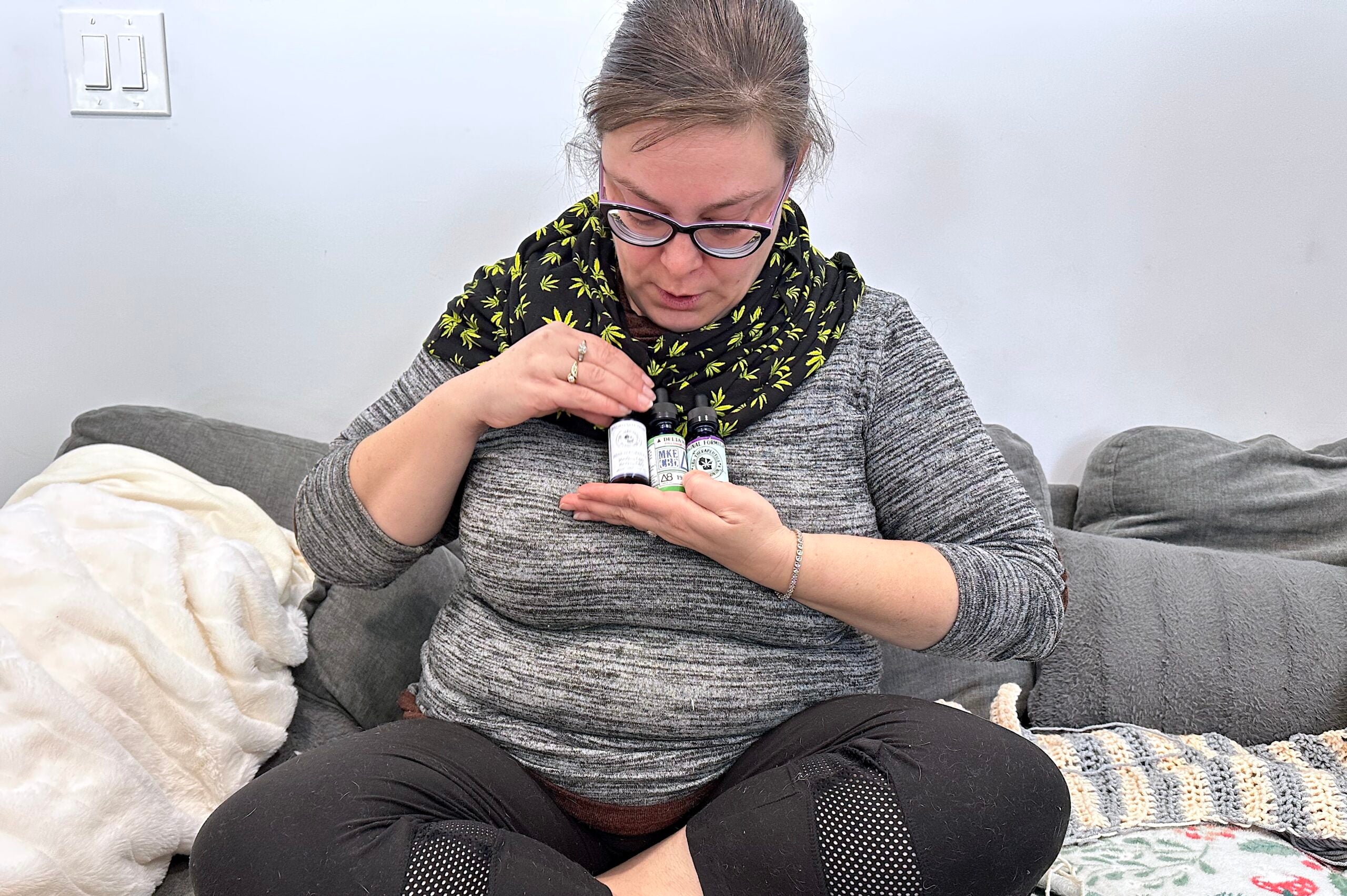 Cannabis activist Rachel Cartwright displays CBD oils she manufactures and distributes at her home in Wisconsin Dells. Anya van Wagtendonk/WPR
