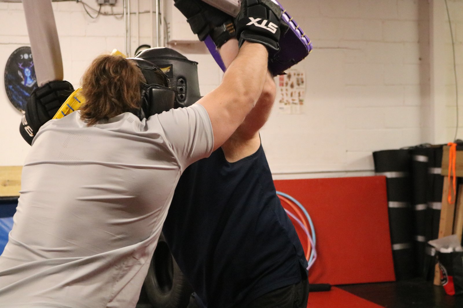 Jed Zabel and Mike Charapata train at Wisconsin Medieval Combat Center. Photo taken Feb. 9, 2026 by Sophie Bolich.