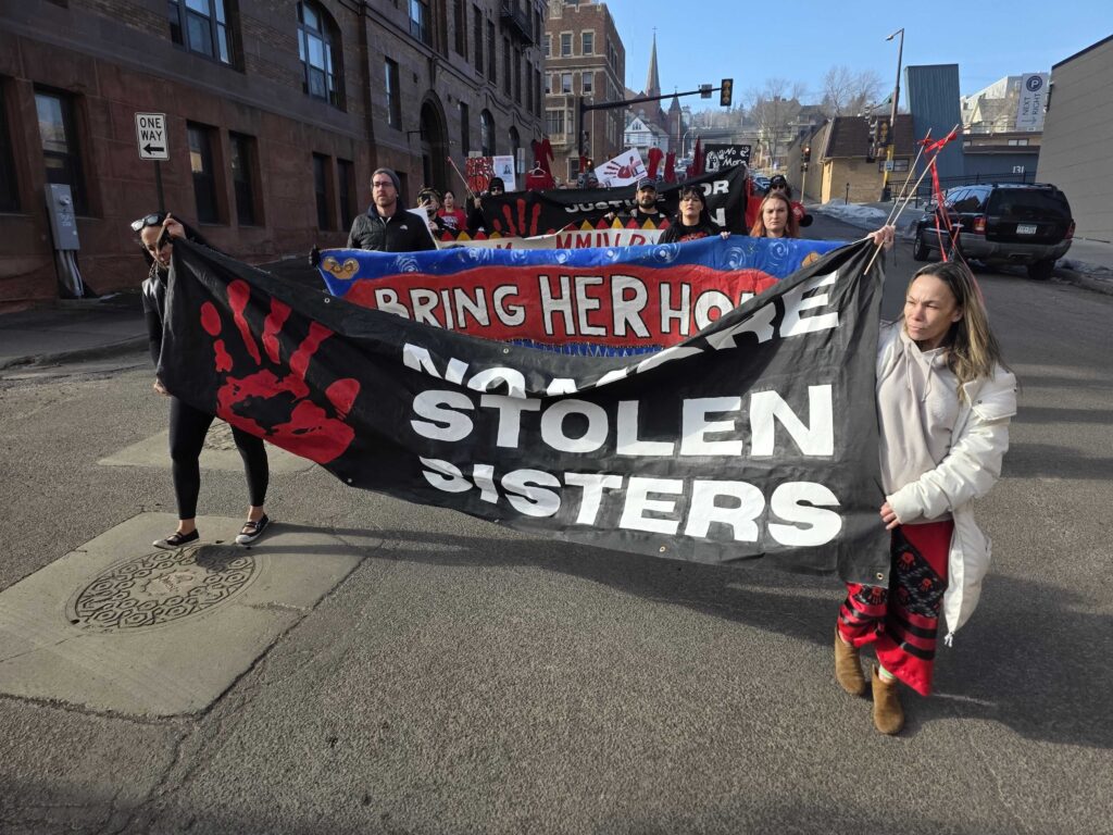 Local officials from Duluth, Minnesota and Superior, Wisconsin spoke to the crowd gathered for the 11th annual Memorial March for Missing and Murdered Indigenous Women and Relatives (MMIWR) on Valentine’s Day in Duluth.
