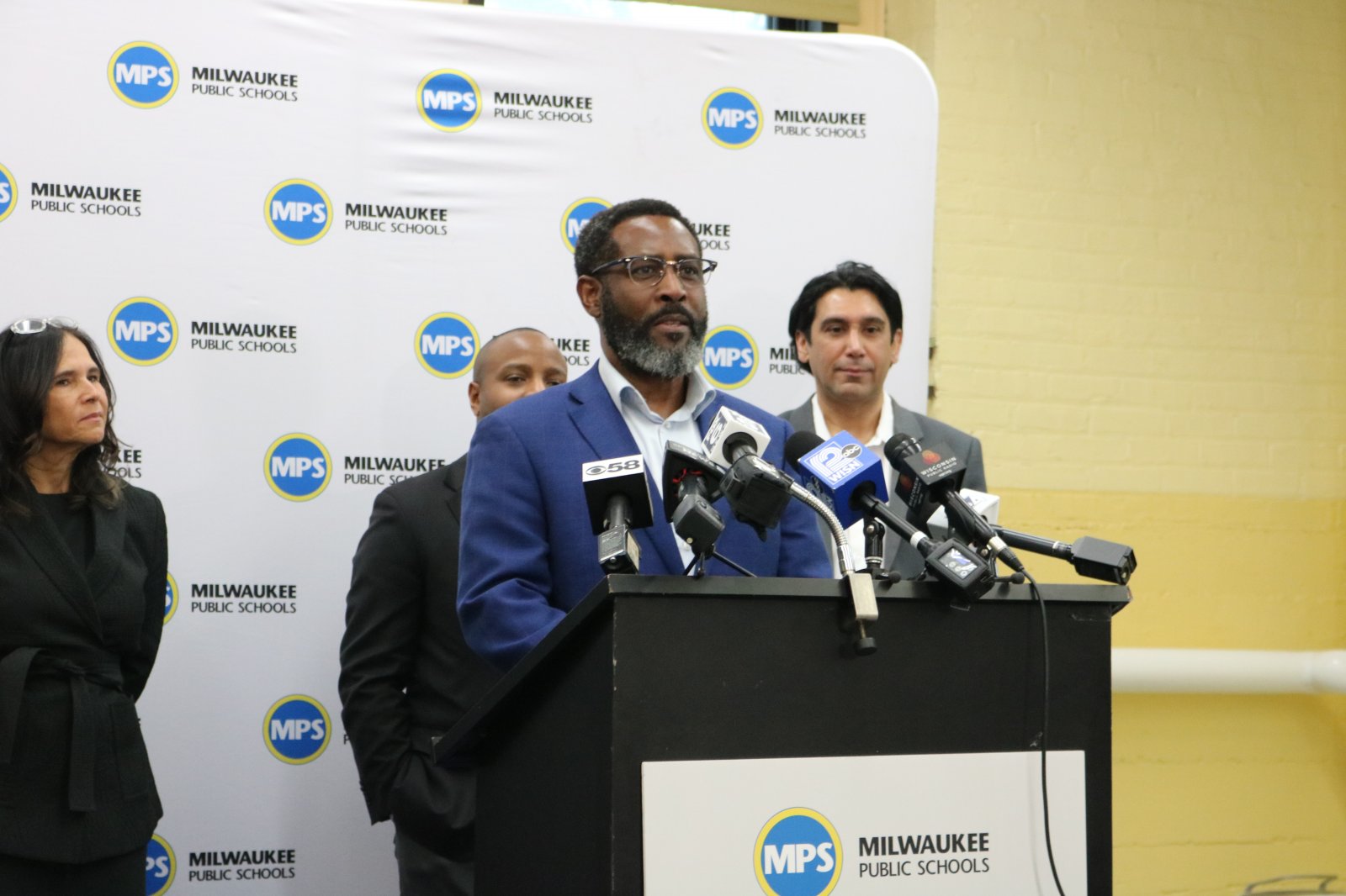 Paul Allwood, chief of the CDC's Lead Poisoning Prevention and Surveillance Branch, speaks during a Feb. 24 press conference at Keefe Avenue Elementary School. Photo by Sophie Bolich.