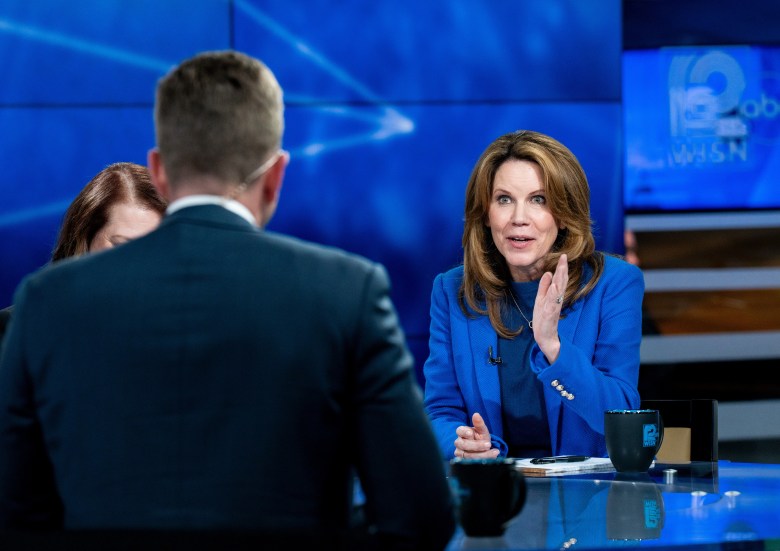 Wisconsin Supreme Court candidate Court of Appeals Judges Maria Lazar participates in the Wisconsin Supreme Court debate hosted by WISN 12 News, April 2, 2026 at WISN-TV in Milwaukee. (Jovanny Hernandez / Milwaukee Journal Sentinel / POOL)