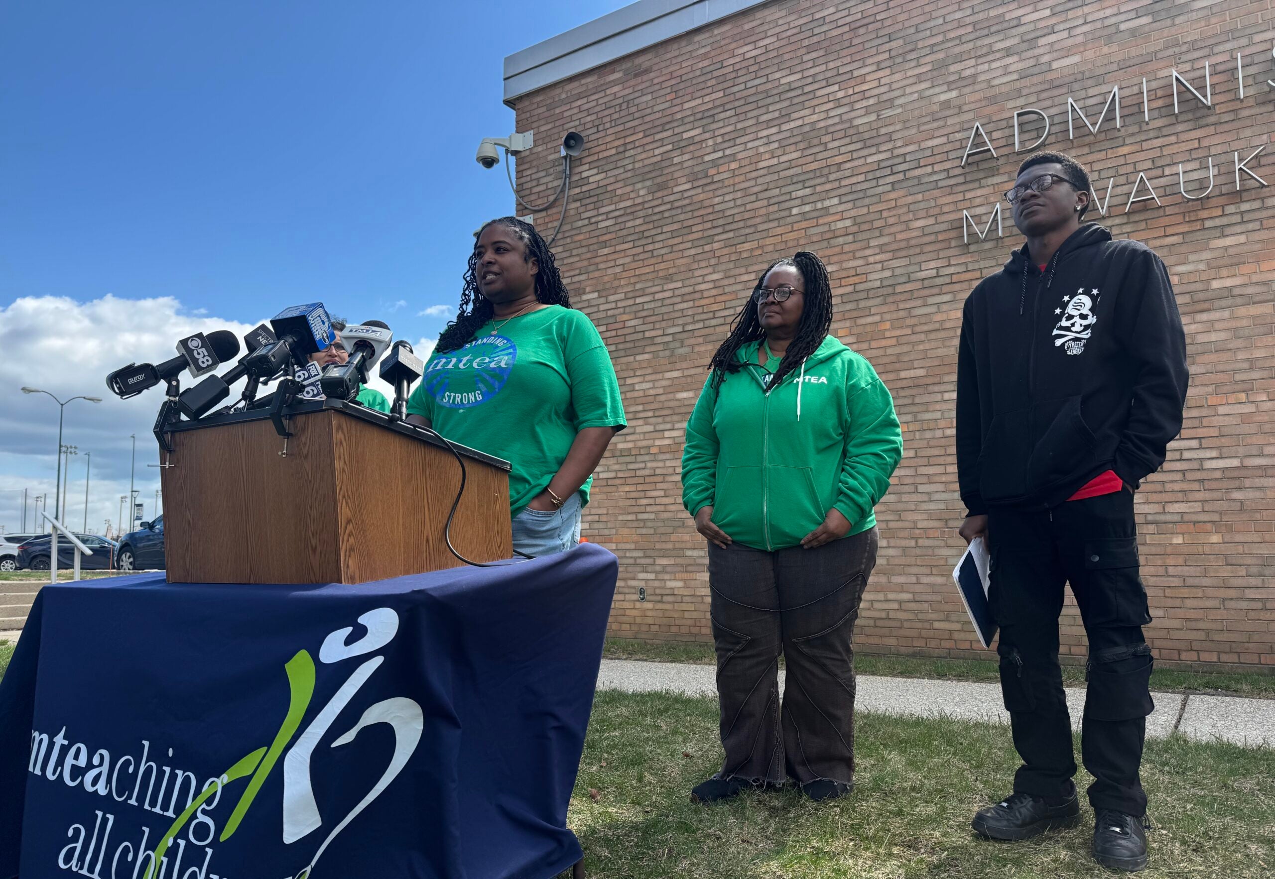 During a Monday press conference, Milwaukee Teachers’ Education Association President Ingrid Walker-Henry called on the school board to hold a special meeting in April to reverse the cuts. Walker-Henry was joined by a parents group and a student group at the press conference.