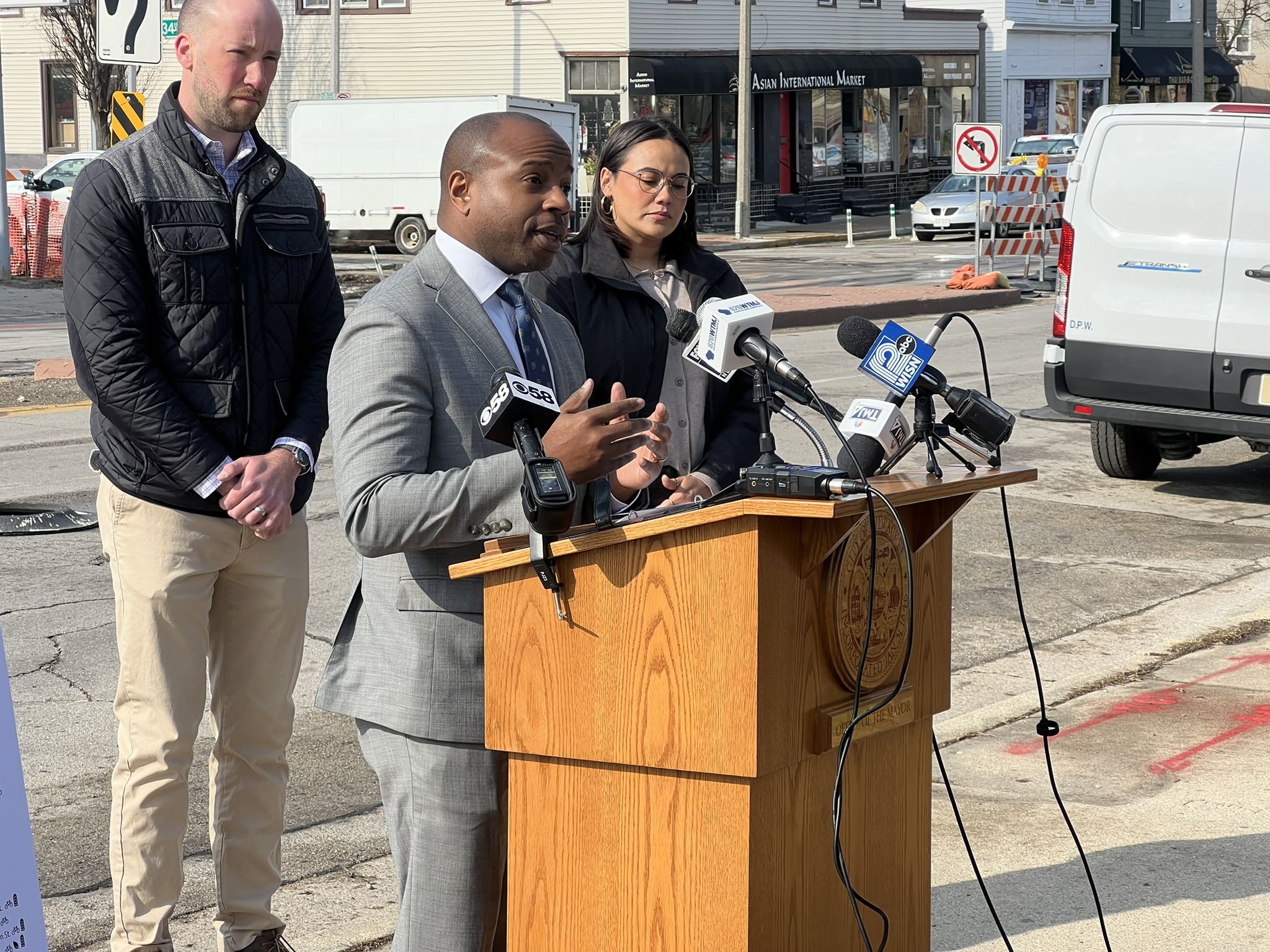 As contractors hammered on W. National Ave. behind them, Mayor Cavalier Johnson and City Engineer Kevin Muhs unveiled a plan Wednesday morning to build 60 traffic-calming projects in 2026.