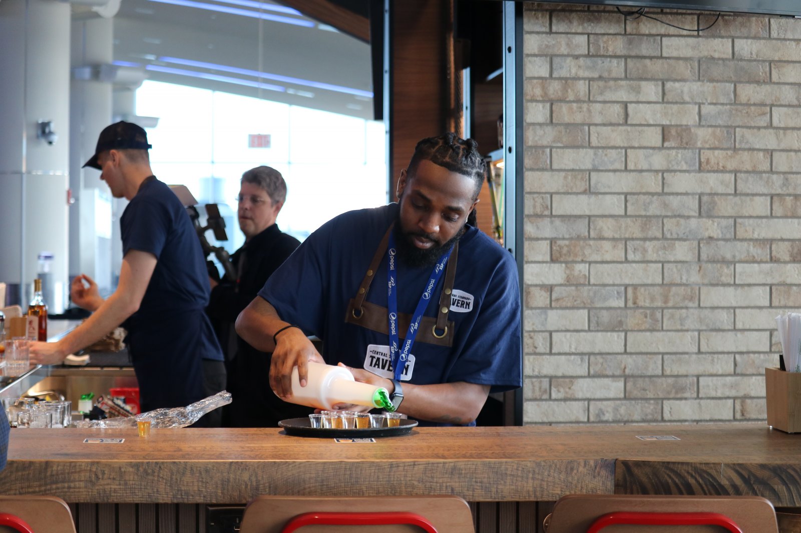 A bartender pours samples at the grand opening of Central Standard Tavern. Photo by Sophie Bolich.