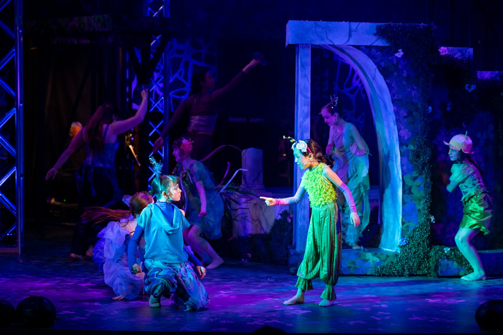 Lainey Techtmann (Puck), Finley Brown (Orchid), and cast in Skylight Music Theatre’s production of A ROCKIN’ Midsummer Night’s Dream running April 10 through 26, 2026