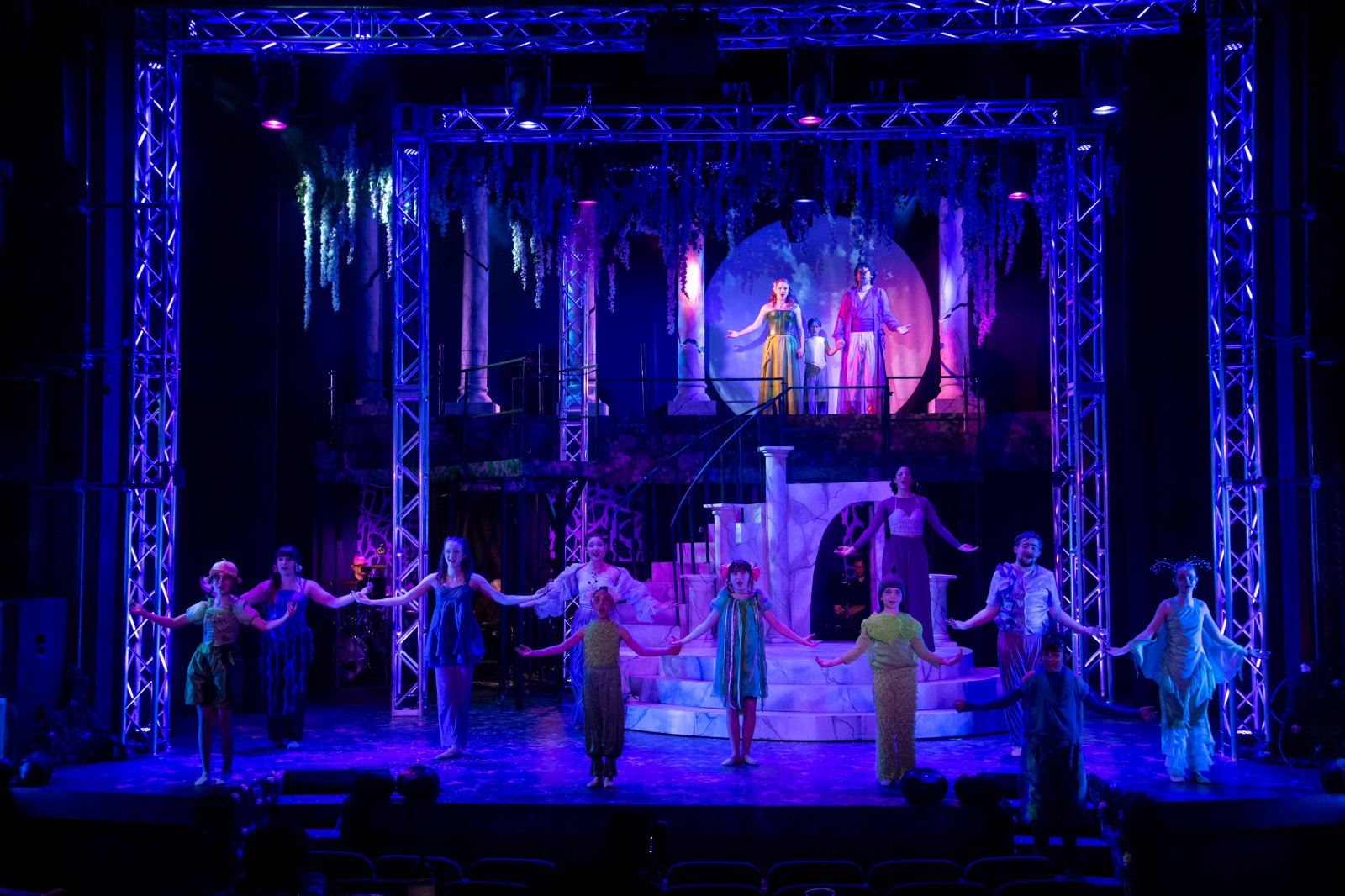 Top: Stephanie Staszak (Titania), Layla Clobes (Changeling), Frankie Breit (Oberon), in Skylight Music Theatre’s production of A ROCKIN’ Midsummer Night’s Dream running April 10 through 26, 2026. Photo by Mark Frohna.