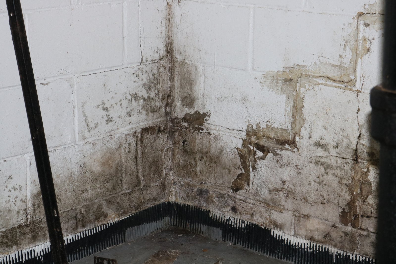 Moldy walls at the Highgrove Holdings-owned house where Ishon Arnold lives with his family. Photo taken April 16, 2026 by Sophie Bolich.