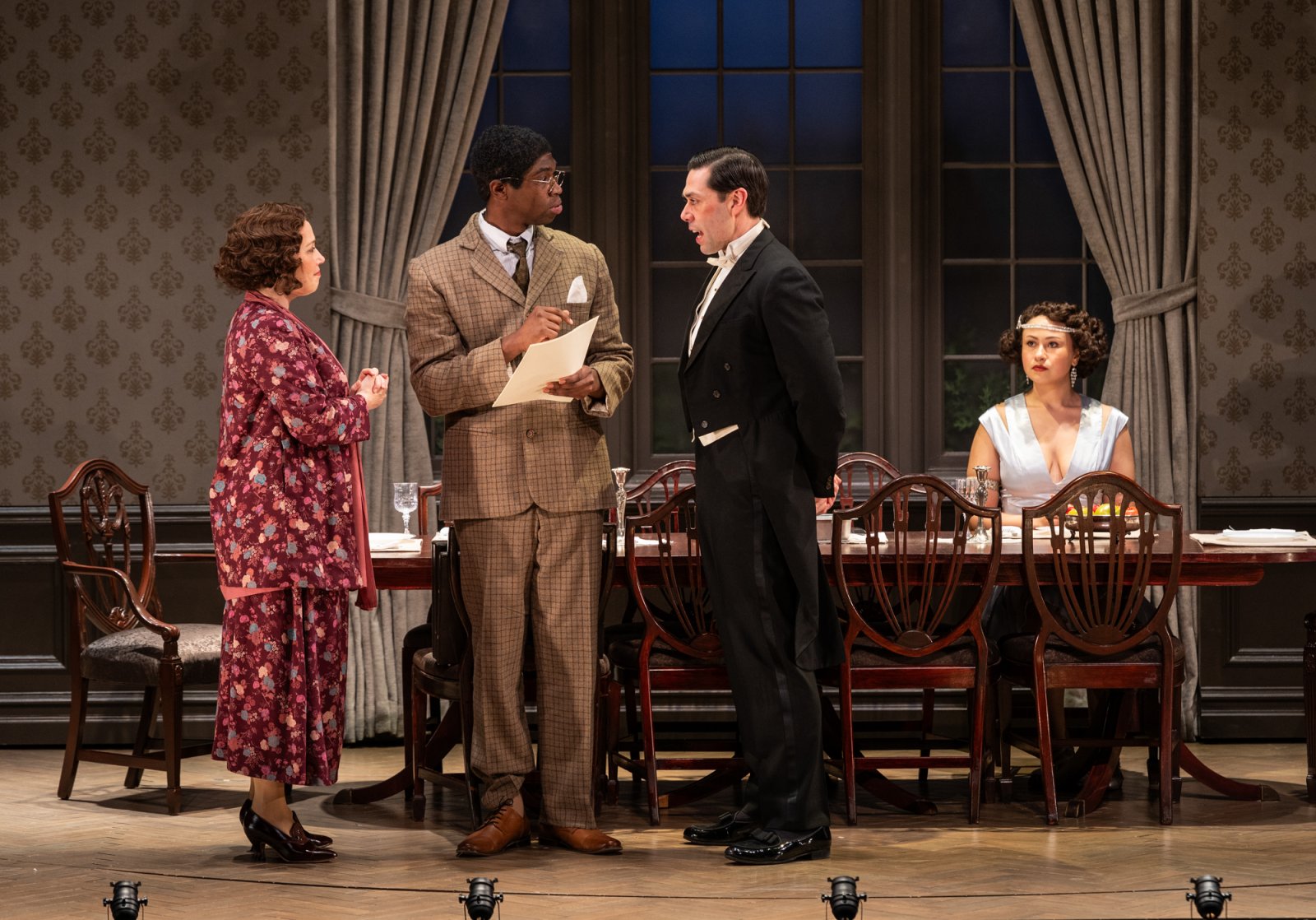 Milwaukee Repertory Theater presents Mrs. Christie April 14 – May 10, 2026. Pictured L to R: Alex Keiper, Blake Hamilton Currie, Matt Bowdren, Amira Danan. Photo by Michael Brosilow.