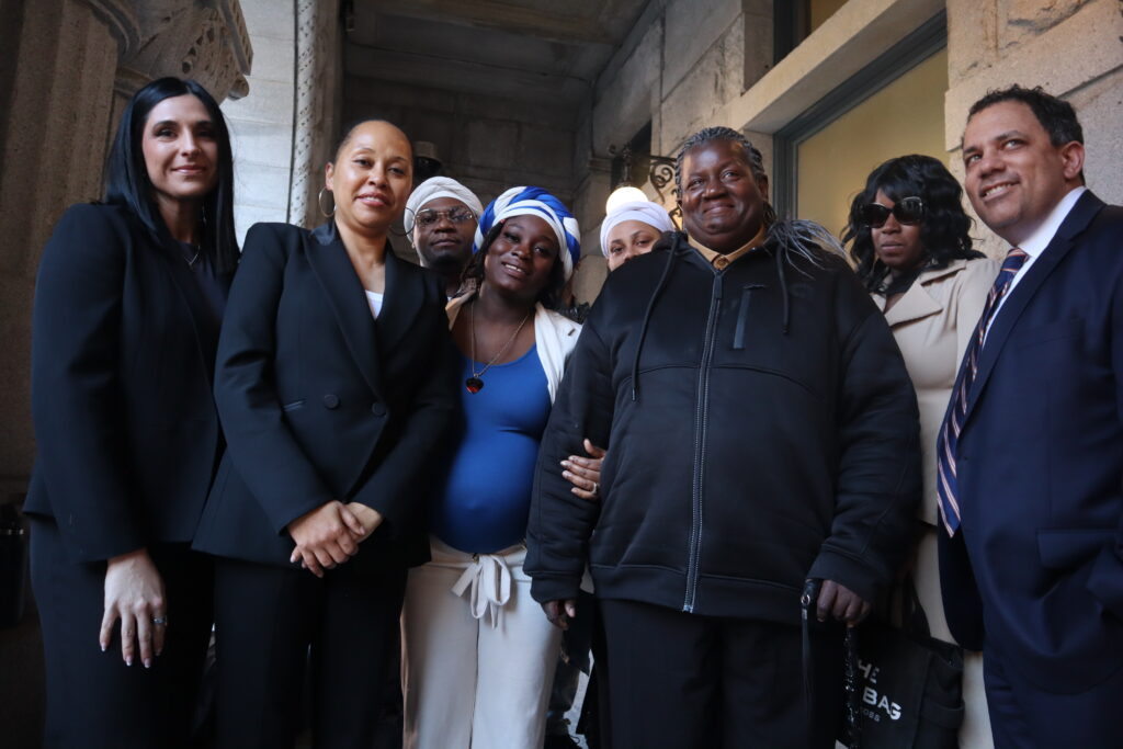 The family of Alvin Cole and their attorneys outside the federal courthouse in Milwaukee. (Photo by Isiah Holmes/Wisconsin Examiner)