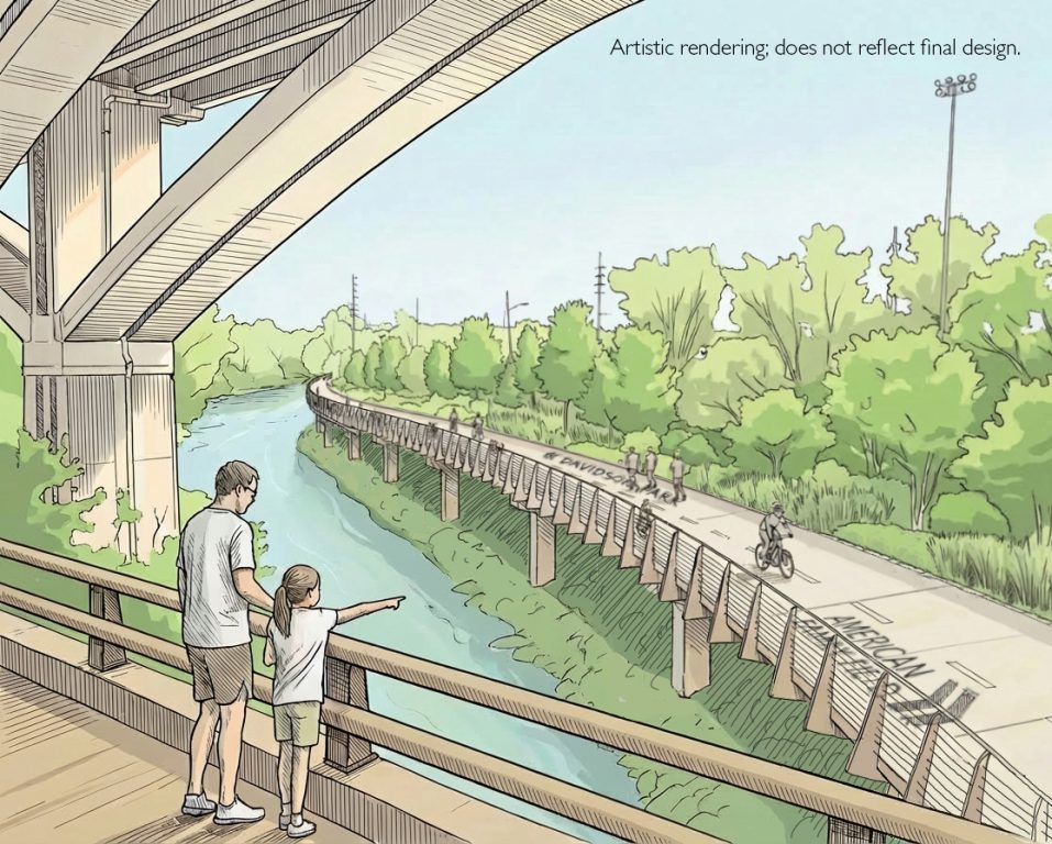 The new trail, depending on the final design, could include new safety infrastructure, elevated trails and new trail boardwalks along water features and through natural areas.