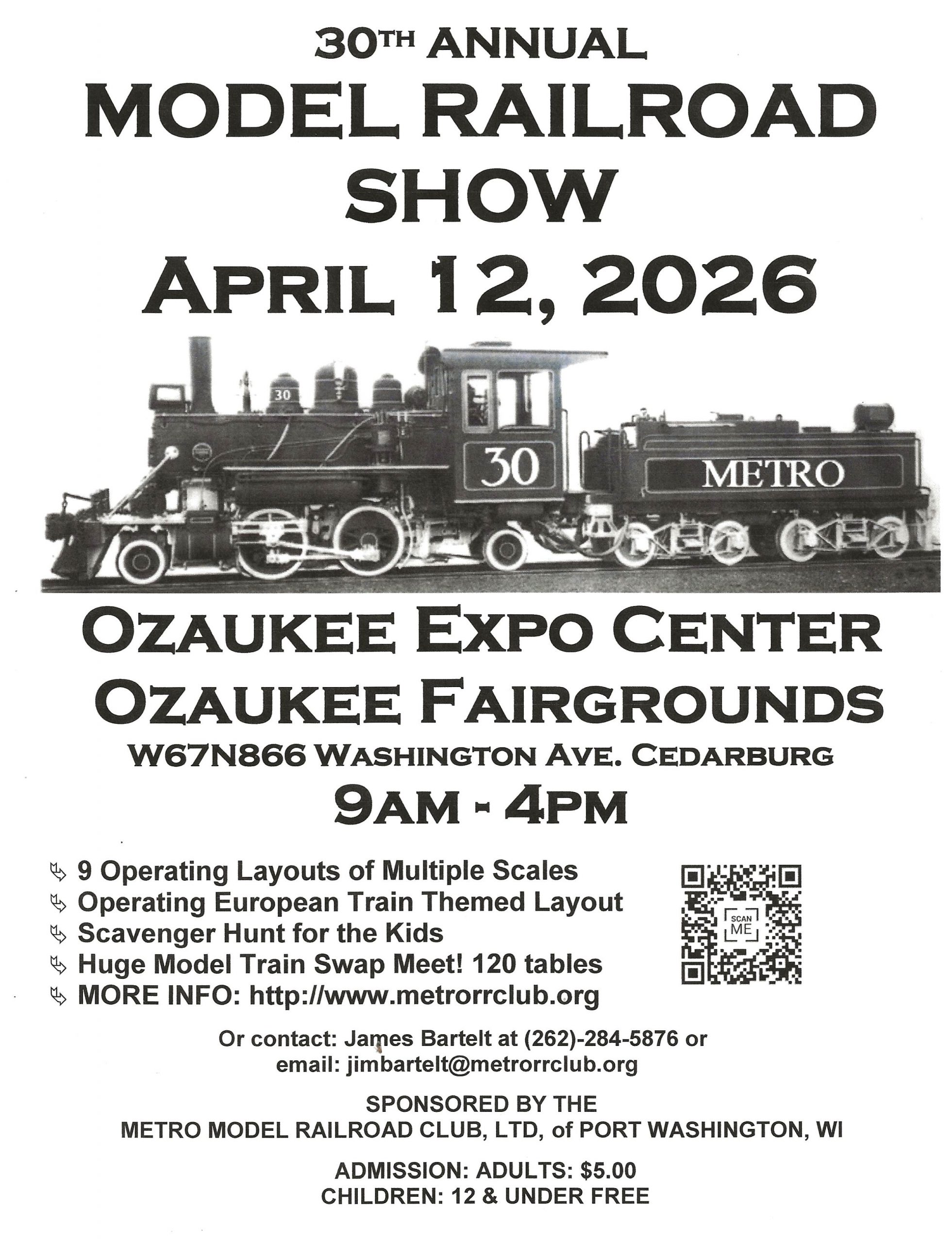 METRO Model Railroad Club’s annual show returns for its 30th straight year bigger and better than ever. The show will have nine operating model railroads and 120 tables of dealers and swappers.