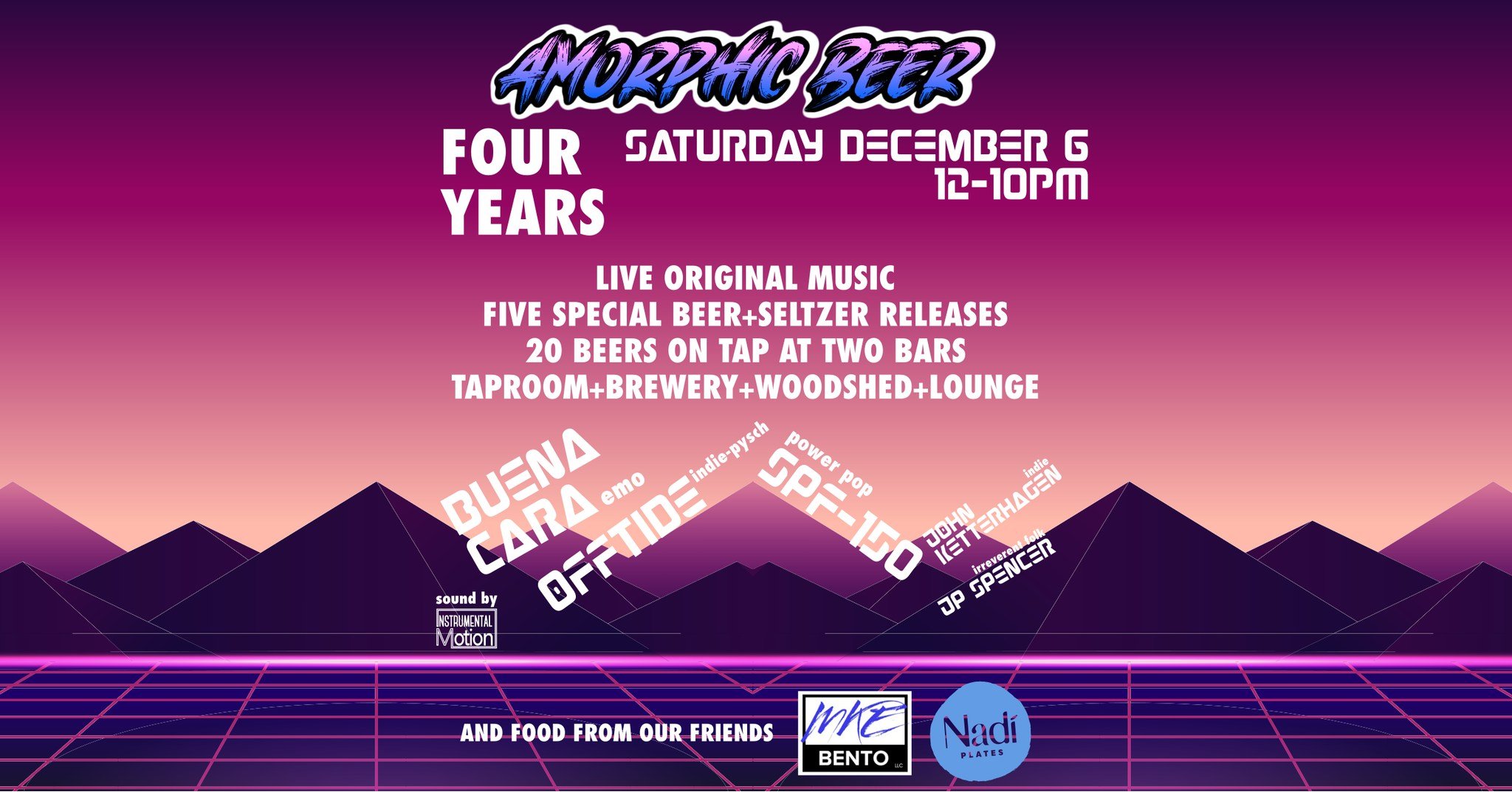 Amorphic Beer has made it four years in Riverwest (over 200 unique beer releases) and is inviting everyone to come celebrate with live music, special beer releases, and amazing food trucks.