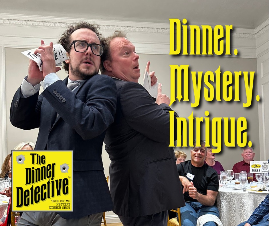 North America’s largest interactive comedy true-crime murder mystery dinner theatre show is now playing! Solve a hilarious mystery while you feast on a fantastic dinner. Just beware! The culprit is hiding in plain sight somewhere in the room, and you may find yourself as a Prime Suspect before you know it! Join us for an event that is very different from a traditional mystery dinner show. Our actors are not dressed in costume and are hidden in the audience! This results in a fun, social and interactive evening suitable for all adults. Each ticket includes our signature award-winning true-crime mystery dinner theatre show (based on actual cold cases), along with a full plated dinner, waitstaff gratuity, and plenty of surprises during the show!