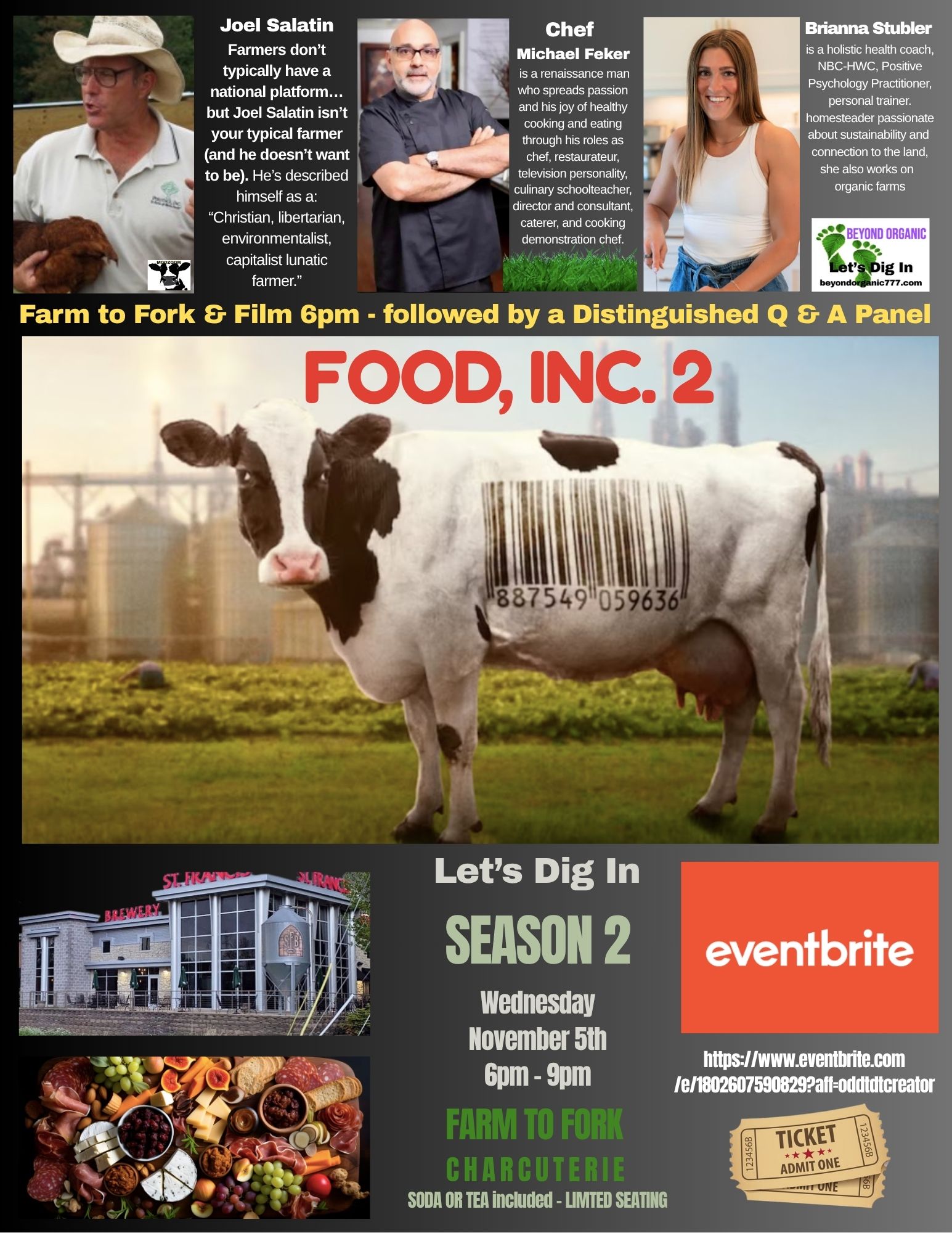 The Let’s Dig In film series returns, featuring powerful documentaries designed to spark conversation and connection. Screening of Food, Inc. with distinguished Q & A panel. Farm to fork charcuterie and beverages included.