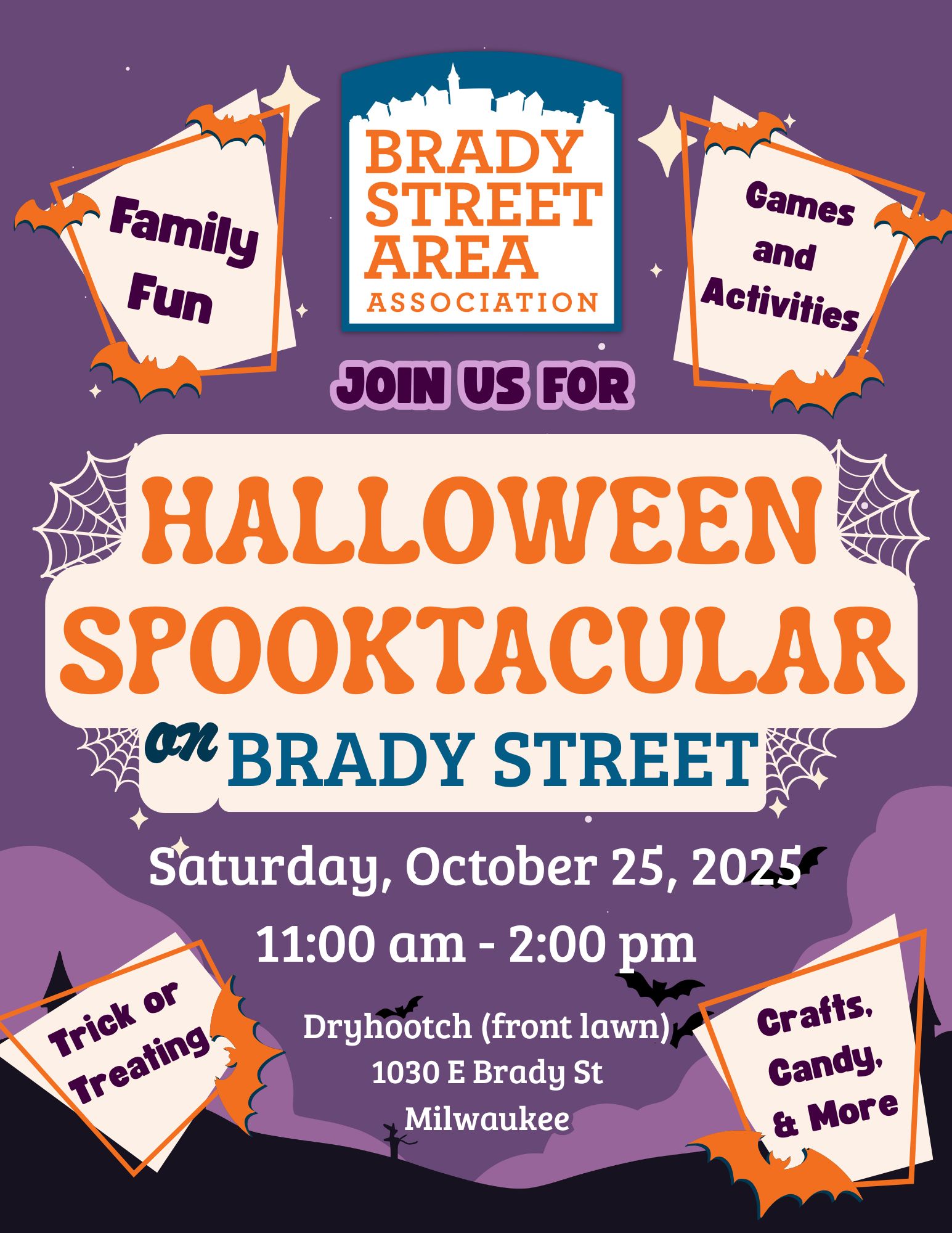 This is your official invitation to an afternoon of classic, family-friendly Halloween fun, right here on Brady Street. It’s the perfect way for kids and parents to kick off Halloween on Brady and show off your creative costumes!
