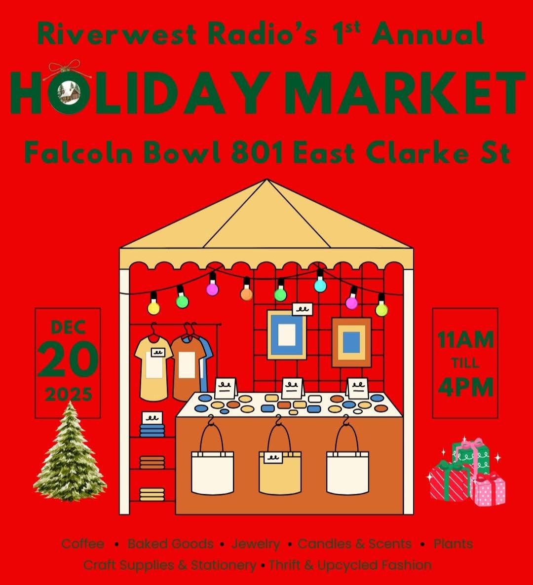 The event combines a neighborhood holiday market—featuring local makers, artists, vintage sellers, and small businesses—with Riverwest Radio’s third annual home-baked cookie fundraiser. Riverwest Radio hosts, volunteers, and friends are baking 27 different varieties of cookies, available for online pre-order now and for purchase at the event while supplies last.