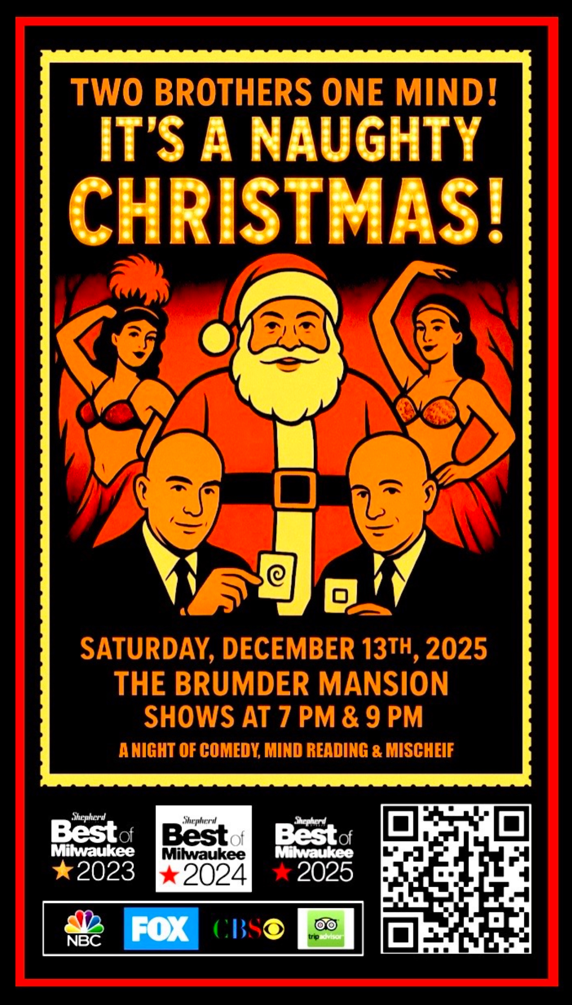Get ready for an unforgettable Naughty Christmas experience at Milwaukee’s Historic Brumder Mansion, hosted by Two Brothers One Mind.
