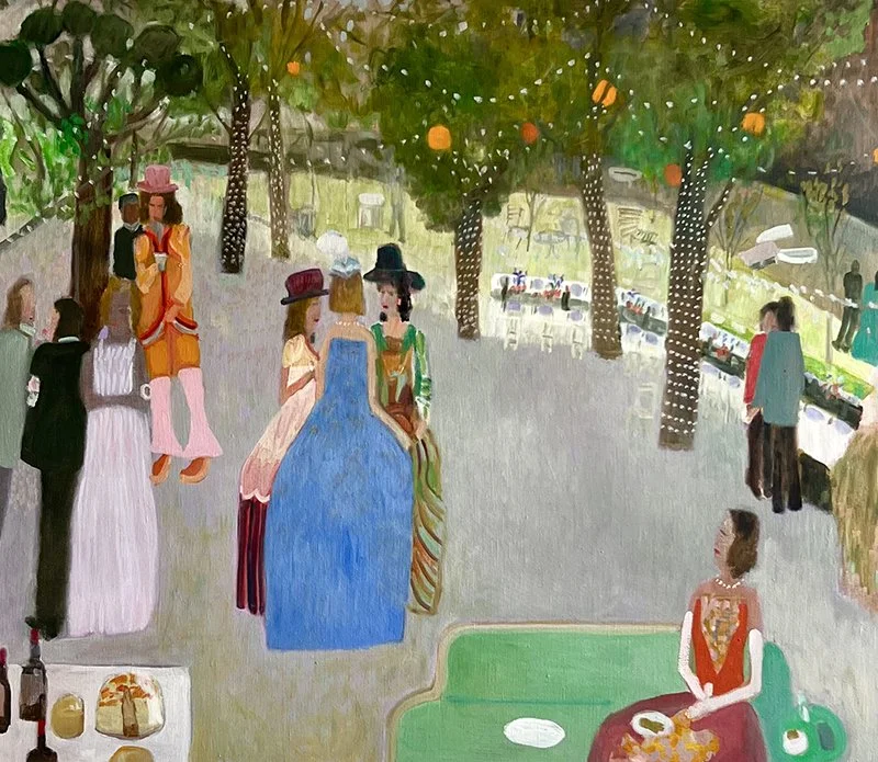 Mulhern draws inspiration from his frequent travels to France, reflected in his depictions of French cafés, flea markets and festive gatherings. In his new body of work, Mulhern is focused on the changing of light that sets the mood for summer gatherings, capturing moments that feel both intimate and universal.