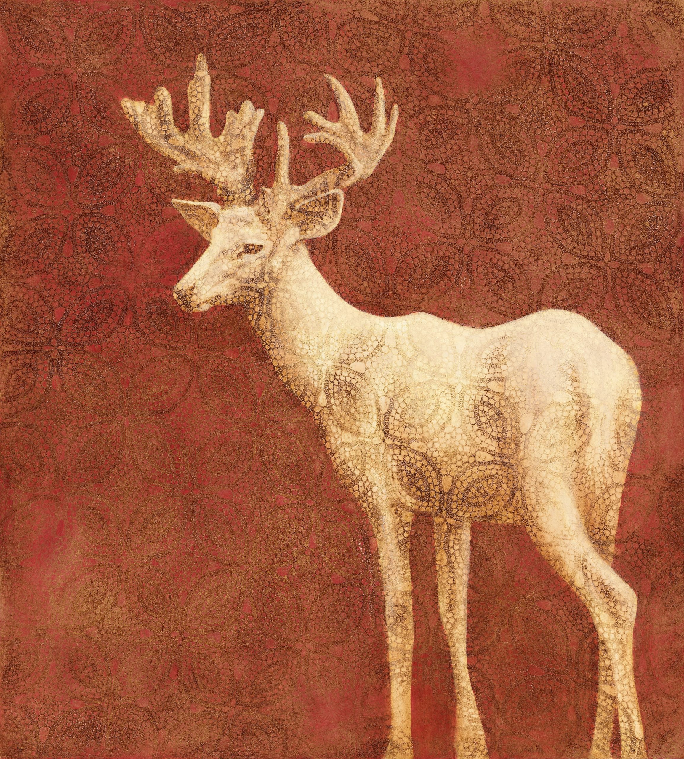 Susan Hall’s oil paintings reverently explore nature. Her animal subjects —often deer, birds, rabbits, and other woodland creatures — are rendered with the gravity and presence of portraiture. Sometimes a human figure joins the animal in quiet communion. A lace or crochet pattern runs throughout many of her pieces, veiling the subject to create a dreamlike atmosphere while also suggesting a delicate connection. Hall’s work is informed by meditations on coexistence, vulnerability, and the powerful harmonies that sustain the natural world.