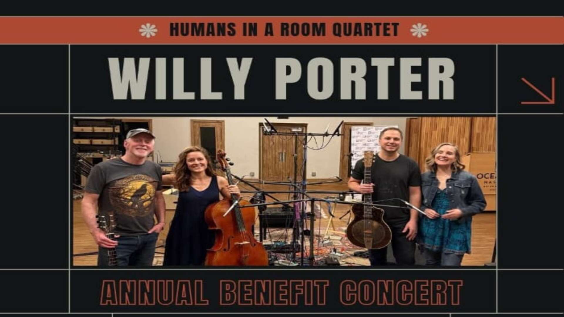 Don’t miss out on this special night of music and community impact featuring a performance from Willy Porter featuring Humans in a Room Quartet.