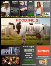 Screening of FOOD Inc with distinguished Q & A panel. Farm to fork charcuterie and beverages included.