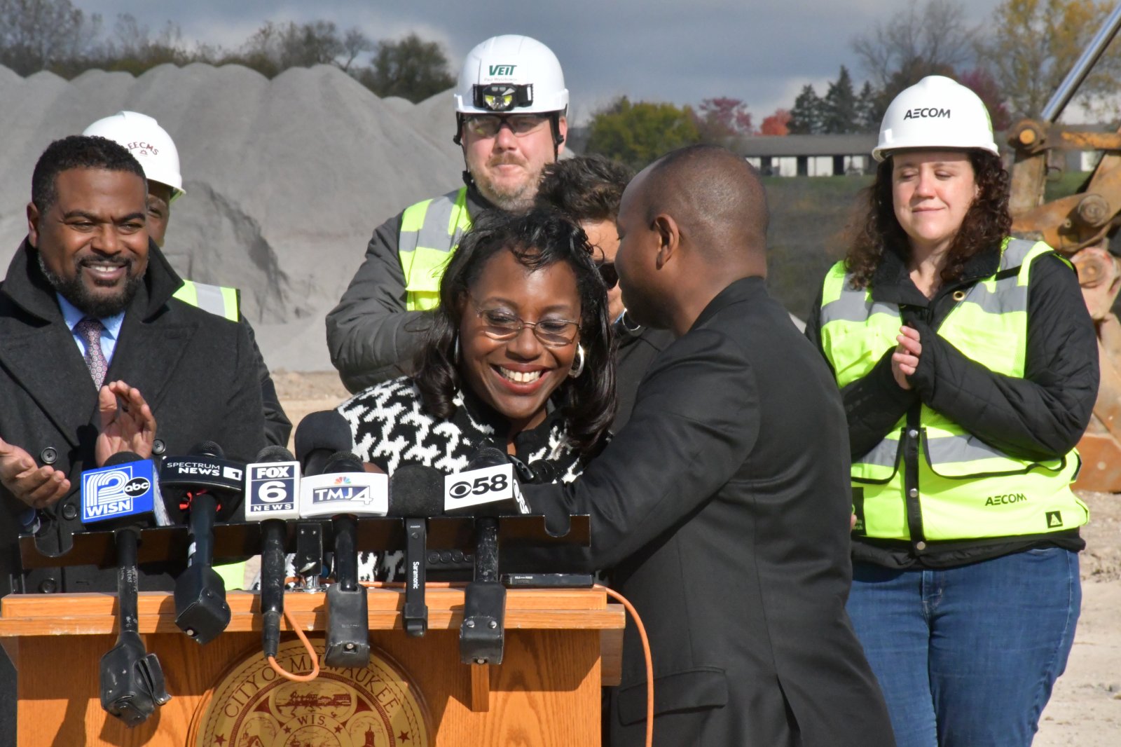Mayor Hugs Alderwoman Larresa Taylor at Northridge Mall demolition press conference