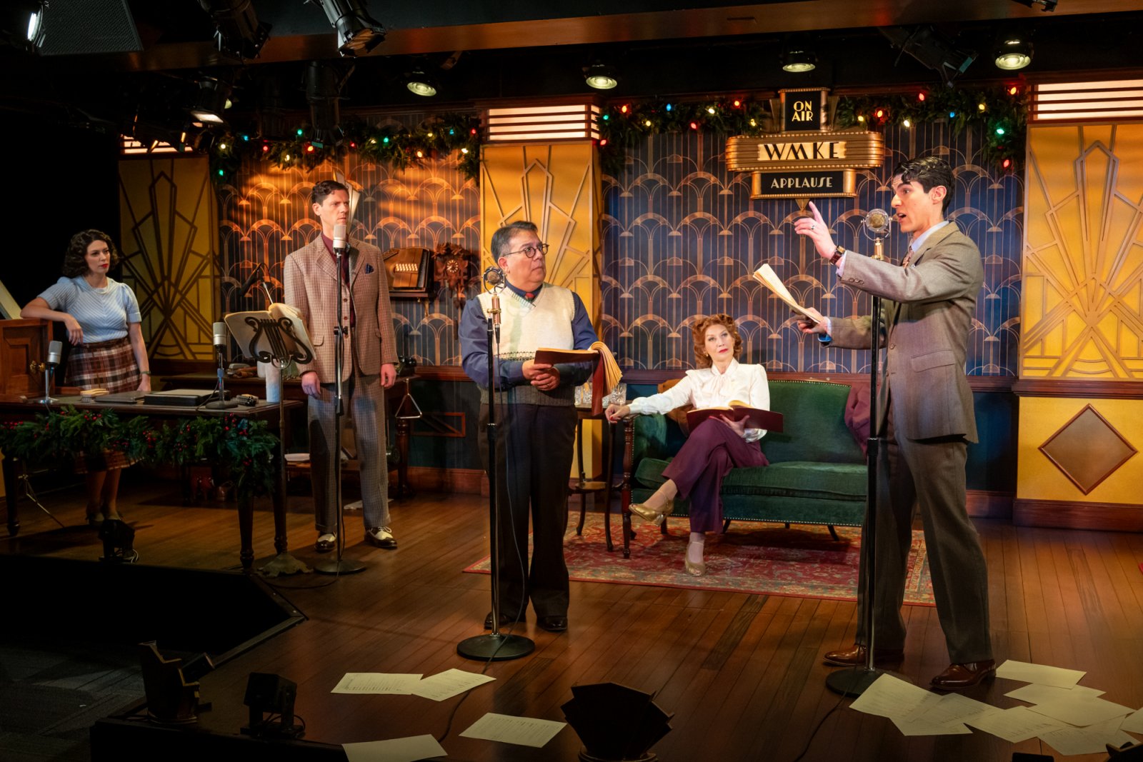 Milwaukee Repertory Theater presents It’s A Wonderful Life: A Live Radio Play in the Stackner Cabaret October 31 – December 21, 2025. Pictured L to R: Eva Nimmer, Wade Elkins, David Flores, Melinda Parrett, Daniel Arana