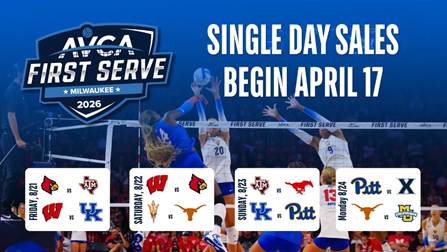 MILWAUKEE (April 7, 2026) – The American Volleyball Coaches Association (AVCA) single-session tickets will go on sale for the 2026 AVCA First Serve event on Friday, April 17, at 10 a.m. CT at www.FiservForum.com.