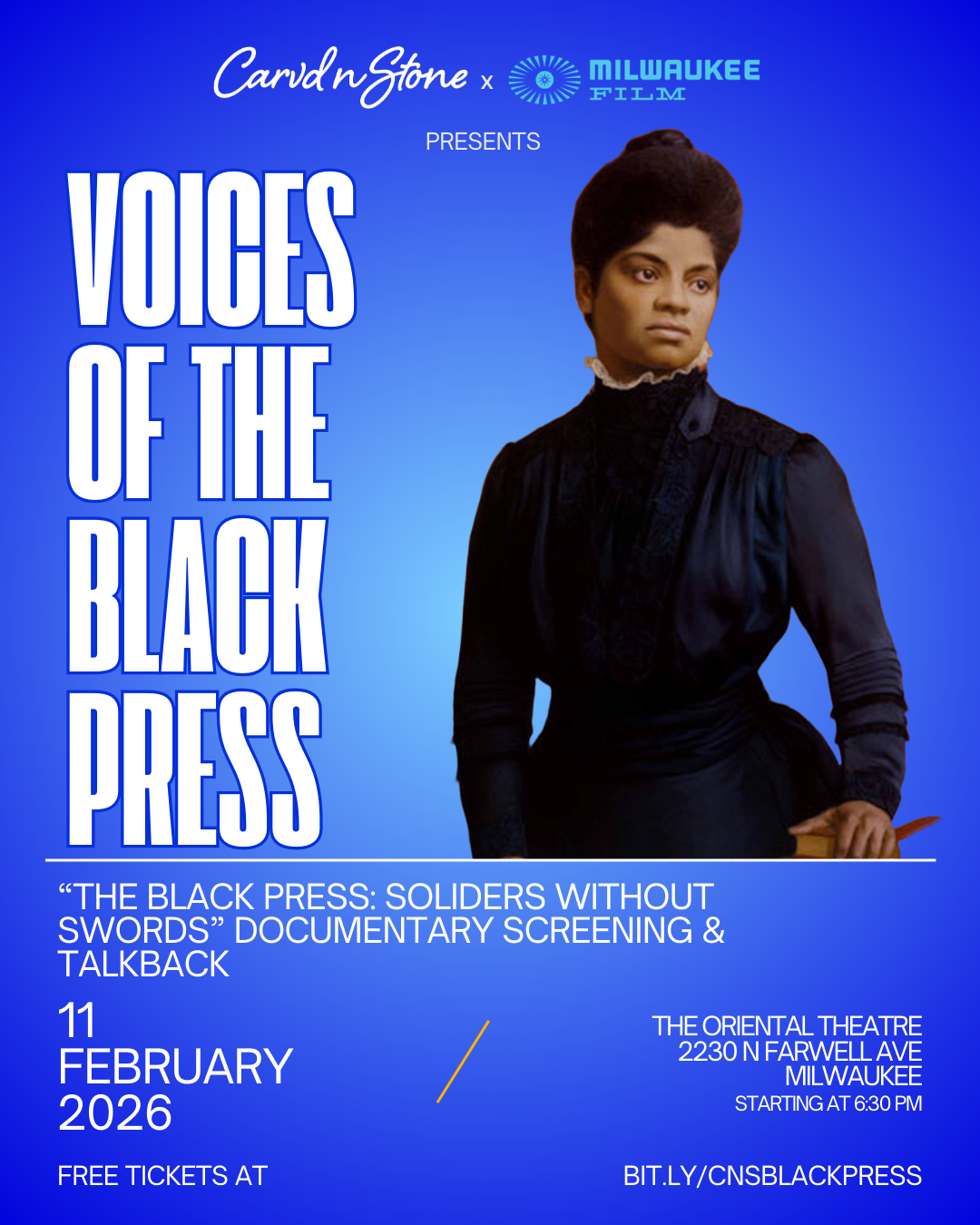 Milwaukee (December 29, 2025) – Carvd N Stone is partnering with Milwaukee Film to present Voices of the Black Press, a free screening of the documentary “The Black Press: Soldiers Without Swords”, followed by a live post-screening talkback with Black journalists and media from Milwaukee during Black History Month 2026.
