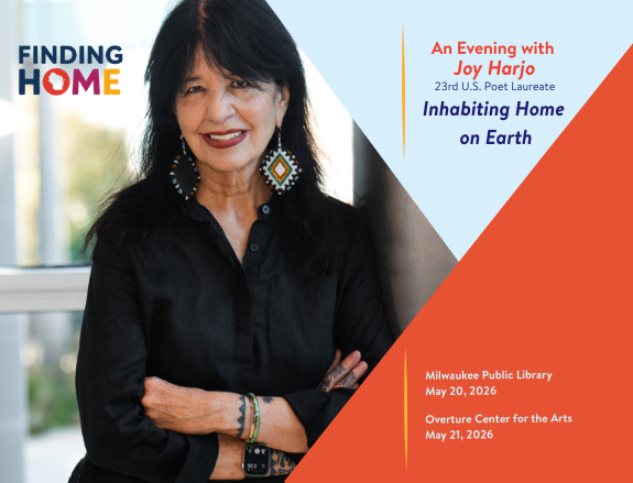 As part of the Wisconsin Academy’s Finding Home series, Joy Harjo events will be held in Madison and Milwaukee. Through poetry and conversation, she will illuminate the layered meanings of home, drawing on themes of land, memory, ancestry, displacement, and healing.
