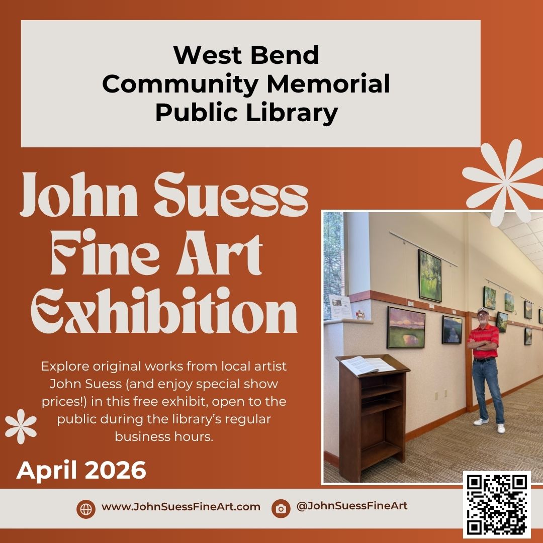 WAUWATOSA, WI – Local artist and retired librarian John Suess is showcasing 25 original works in a special exhibition at the West Bend Community Memorial Library, on view on the main floor of the building now through the end of April 2026.