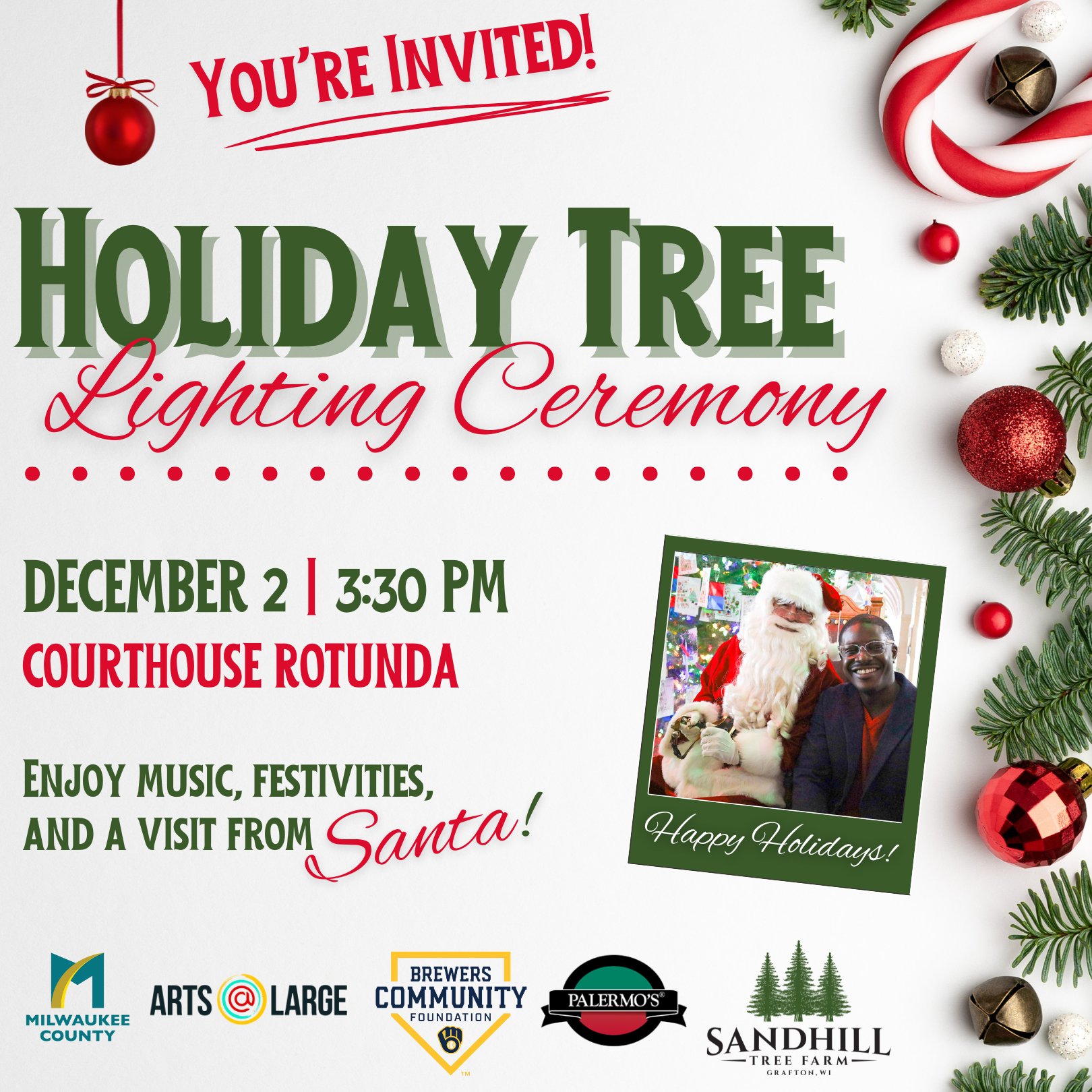 MILWAUKEE – On Tuesday, December 2, at 3:30 PM, County Executive David Crowley invites the community to attend the annual Milwaukee County Holiday Tree Lighting Ceremony at the Milwaukee County Courthouse Rotunda. The ceremony will feature music, a visit from Santa, and fun festivities for the entire family.