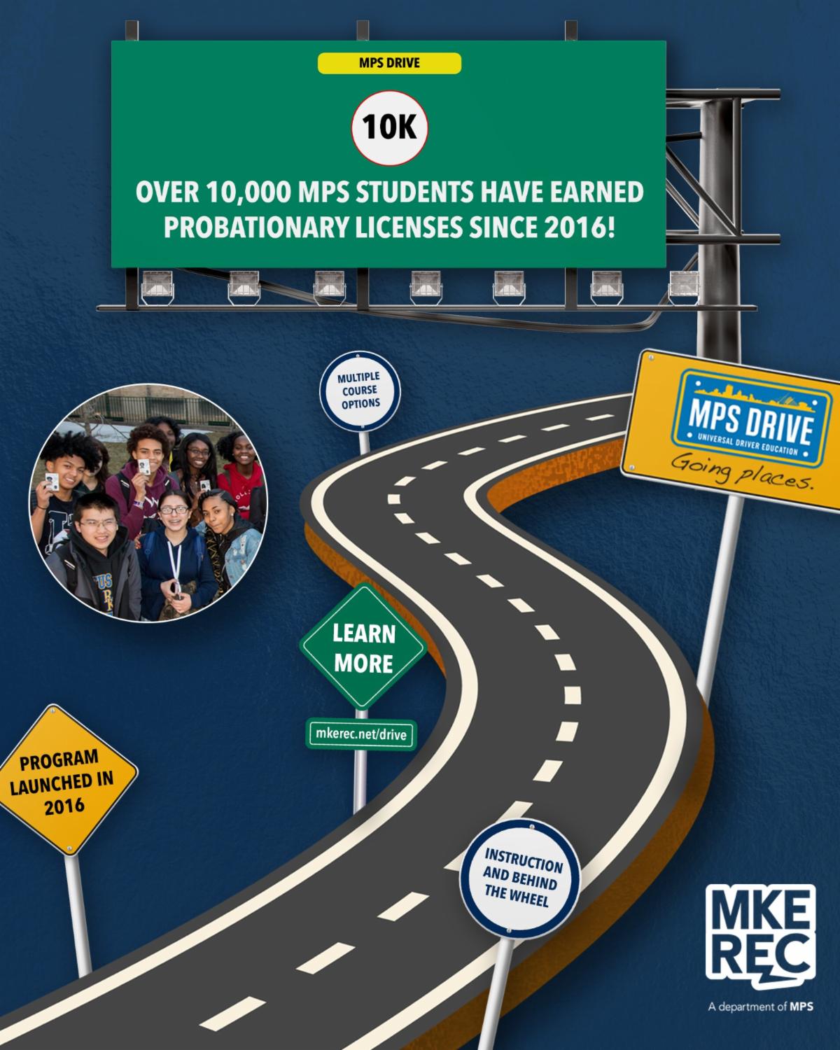 Milwaukee Public Schools (MPS) and Milwaukee Recreation announced that more than 10,000 young people have earned their probationary driver’s licenses and completed safe-driving instruction through the MPS Drive initiative since its launch in 2016.